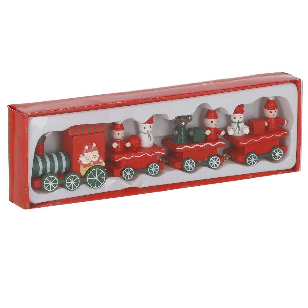 Drevený vláčik 21x5cm červeno-zelený, vianočné dekorácie