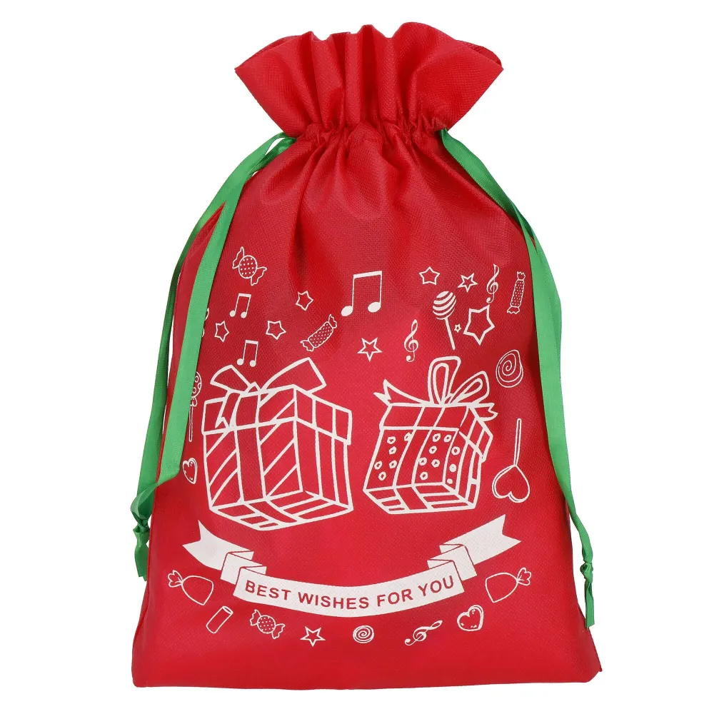 Originálna vianočná taška so sťahovacou šnúrkou a ozdobnou stuhou, ktorá dodá každému balíčku sviatočnú atmosféru. Vianočný motív s darčekmi a prianím všetkého najlepšieho z neho robí štýlovú dekoráciu pod stromček. Ideálne pre rýchle a elegantné zabalenie darčeka. Vyrobená z odolného materiálu, ktorý je možné použiť opakovane. Rozmer 36×25 cm.