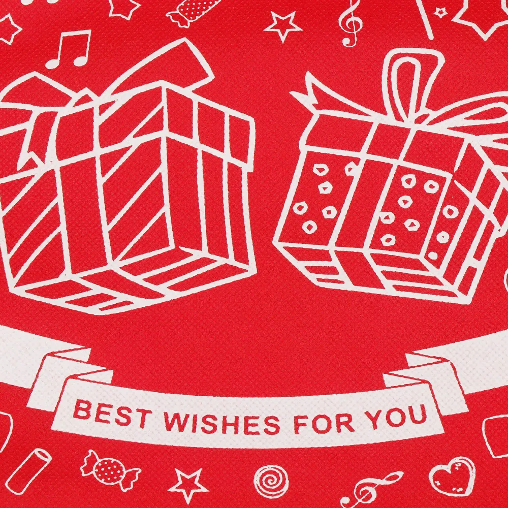 Vianočná taška 36x25 cm Best wishes for you červená je krásnym a praktickým riešením na balenie sviatočných darčekov. Jej prevedenie v podobe originálneho darčekového vrecka so sťahovacou šnúrkou dopĺňa ozdobná stuha , ktorá dodáva celému baleniu elegantný a slávnostný vzhľad. Motív s darčekmi a prianím všetkého najlepšieho vytvára kúzelnú atmosféru a robí z tašky nielen obal, ale aj dekoráciu pod stromček.