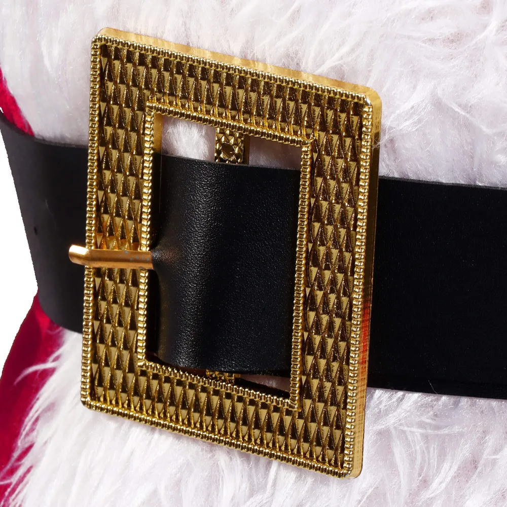 Kompletný 9-dielny oblek pre Santu Clausa / Mikuláša. V sete je bunda, nohavice, opasok, čiapky, návleky na topánky, fúzy, parochňa, rukavice, okuliare. Kostým je vyrobený z kvalitného, priedušného materiálu s príjemnou zamatovou úpravou. Vďaka elastickému pásu a pohodlnému strihu perfektne padne akejkoľvek dospelej postave. Univerzálna veľkosť pre dospelých.