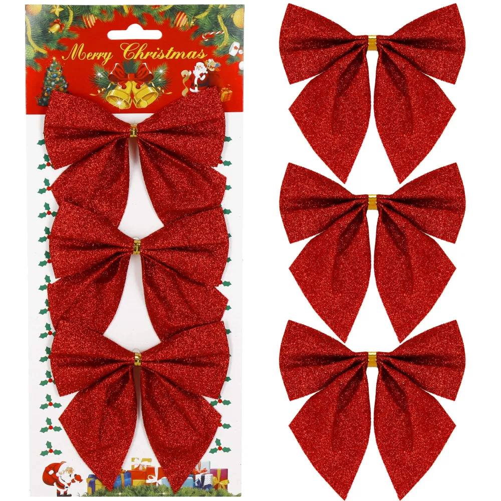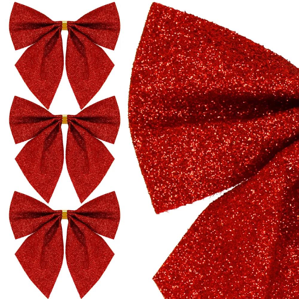 Sada 3 ks vianočných mašlí s drôtikom, vďaka ktorému sa dá ľahko a rýchlo pripevniť na vetvu vianočného stromčeka, trstinu alebo girlandu. Farba mašlí je červená s trblietkami. Perfektný na zdobenie darčekov, vencov, tvorbu vianočných dekorácií alebo ako ozdoba vianočného stromčeka.