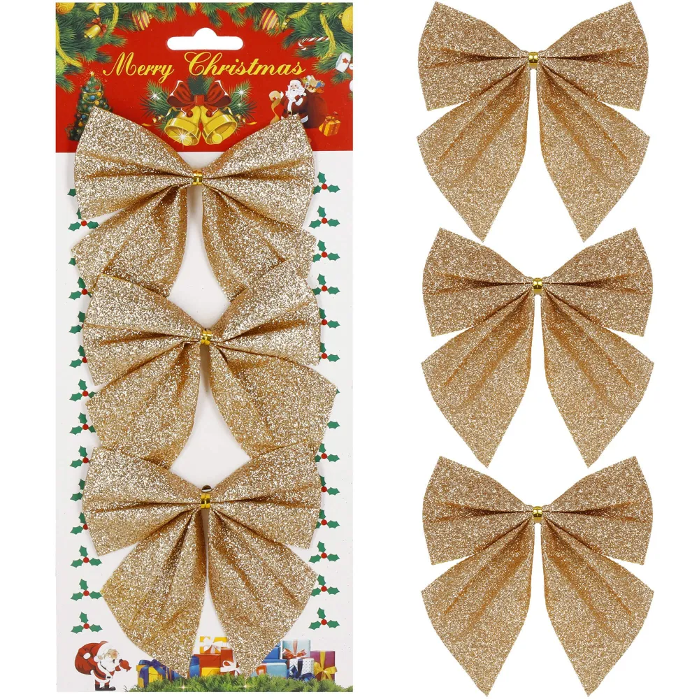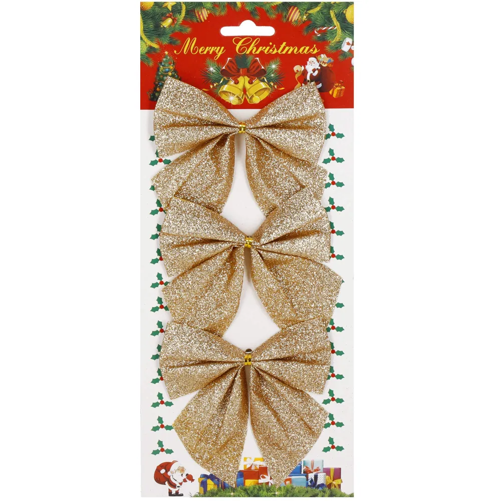 Sada 3 ks vianočných mašlí s drôtikom, vďaka ktorému sa dá ľahko a rýchlo pripevniť na vetvu vianočného stromčeka, rákosie alebo girlandu . Farba mašlí je zlatá s trblietkami. Perfektný na zdobenie darčekov, vencov, tvorbu vianočných dekorácií alebo ako ozdoba vianočného stromčeka.