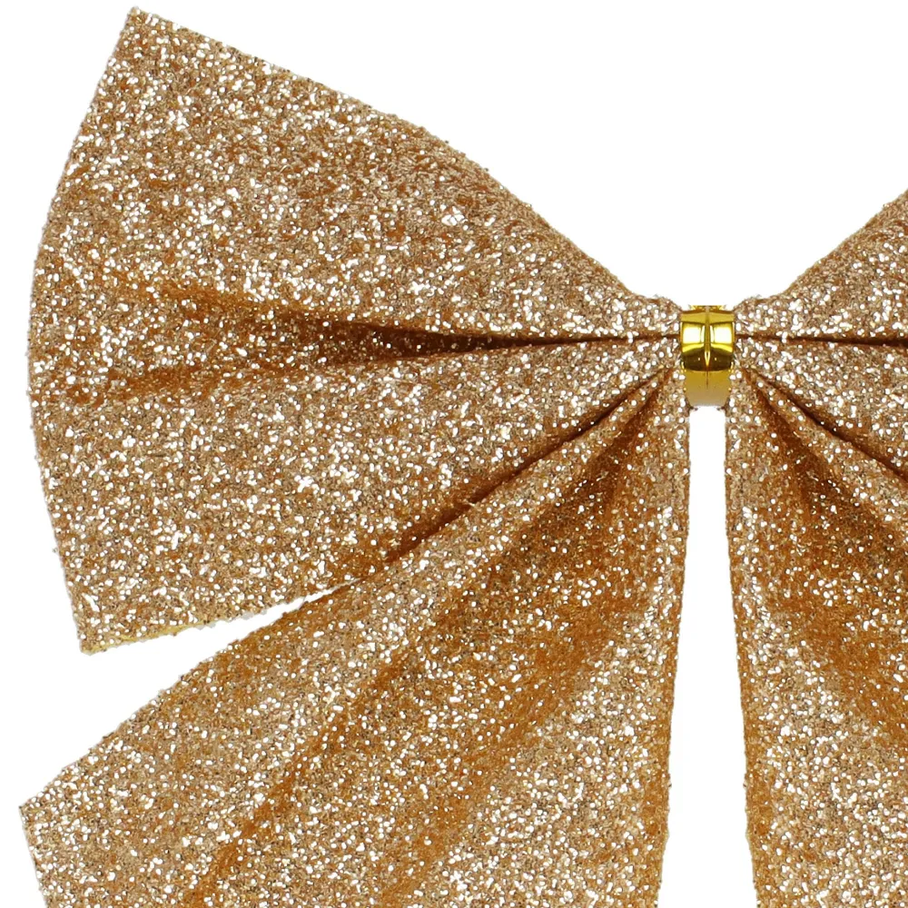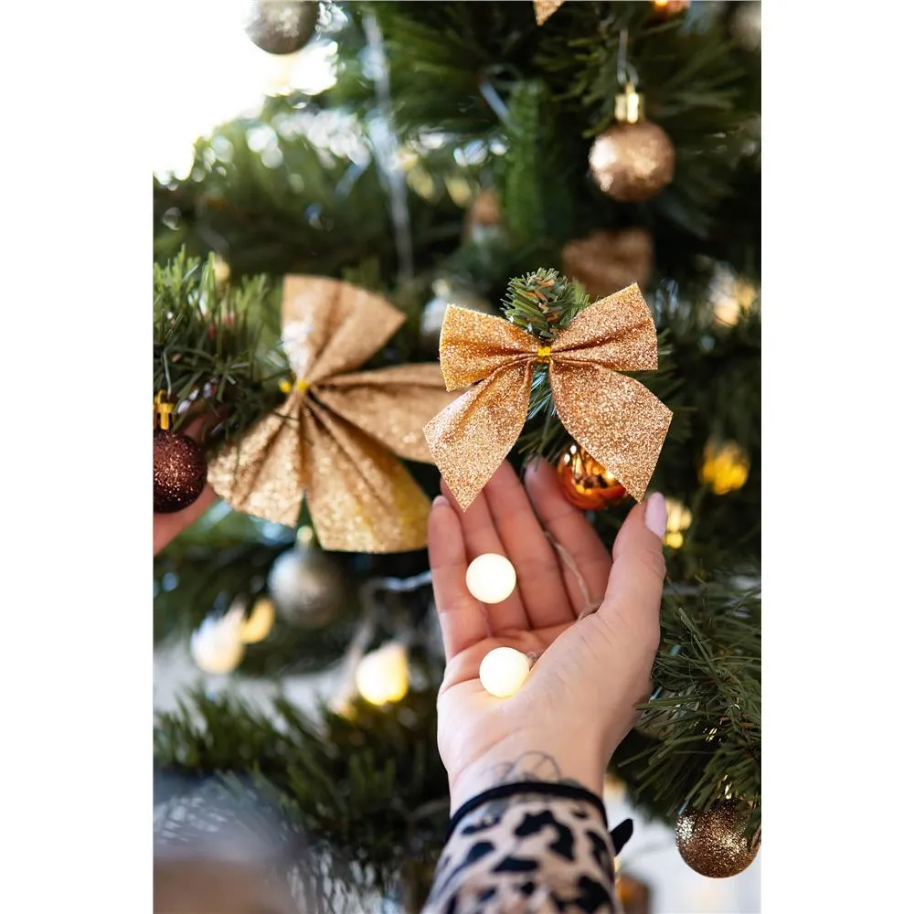 Sada 3 ks vianočných mašlí s drôtikom, vďaka ktorému sa dá ľahko a rýchlo pripevniť na vetvu vianočného stromčeka, rákosie alebo girlandu. Farba mašlí je zlatá s trblietkami. Perfektný na zdobenie darčekov, vencov, tvorbu vianočných dekorácií alebo ako ozdoba vianočného stromčeka.