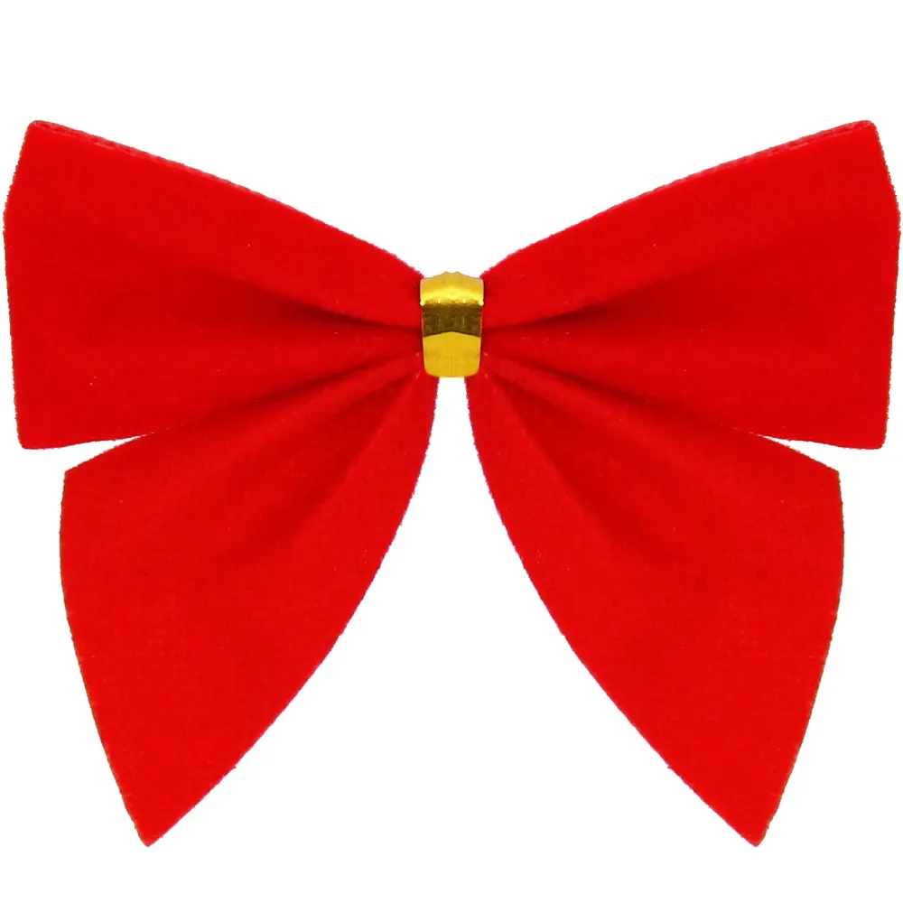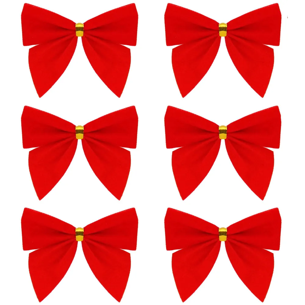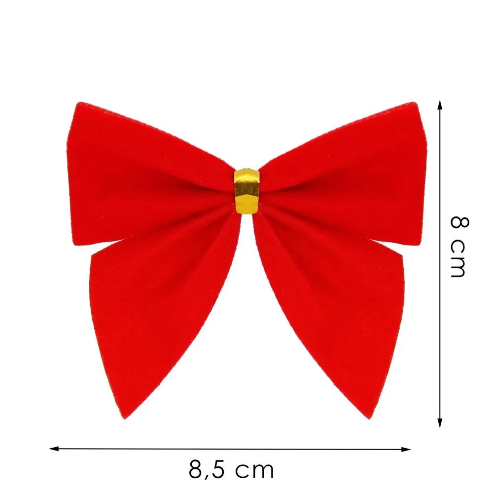 Sada 6 ks vianočných mašlí s drôtikom, vďaka ktorému sa dá ľahko a rýchlo pripevniť na vetvu vianočného stromčeka, trstina alebo girlandu . Materiál príjemný na dotyk, pripomínajúci semiš, farba červená Perfektný na zdobenie darčekov, vencov, tvorbu vianočných dekorácií alebo ako ozdoba vianočného stromčeka.
