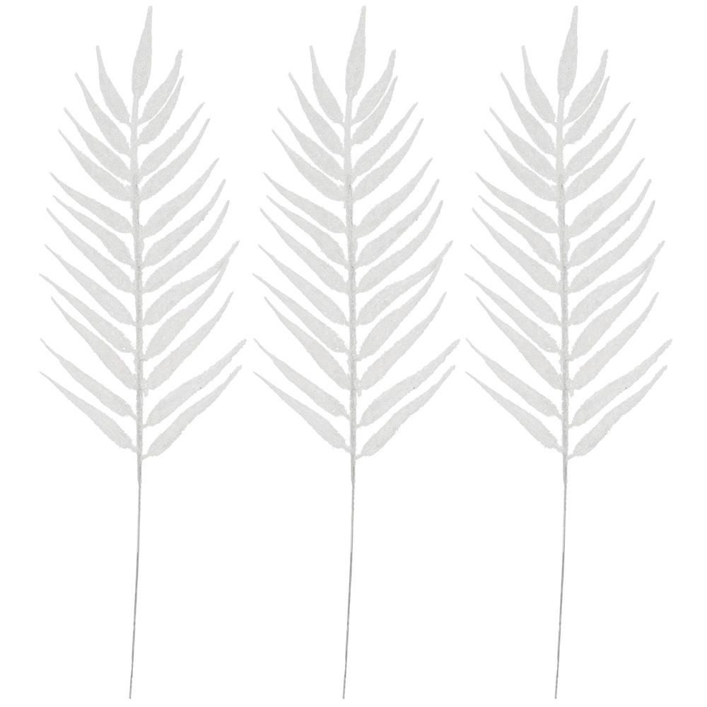 Trblietavé vetvičky paprade v bielej farbe, súprava 3 ks. Zužený koniec pre ľahké zapichnutie. Výška 43 cm, šírka 13 cm. Prekrásna dekorácia, ktorá môže byť použitá samostatne alebo ako prvok väčších aranžmánov. Vhodné pre vnútorné aj vonkajšie použitie.