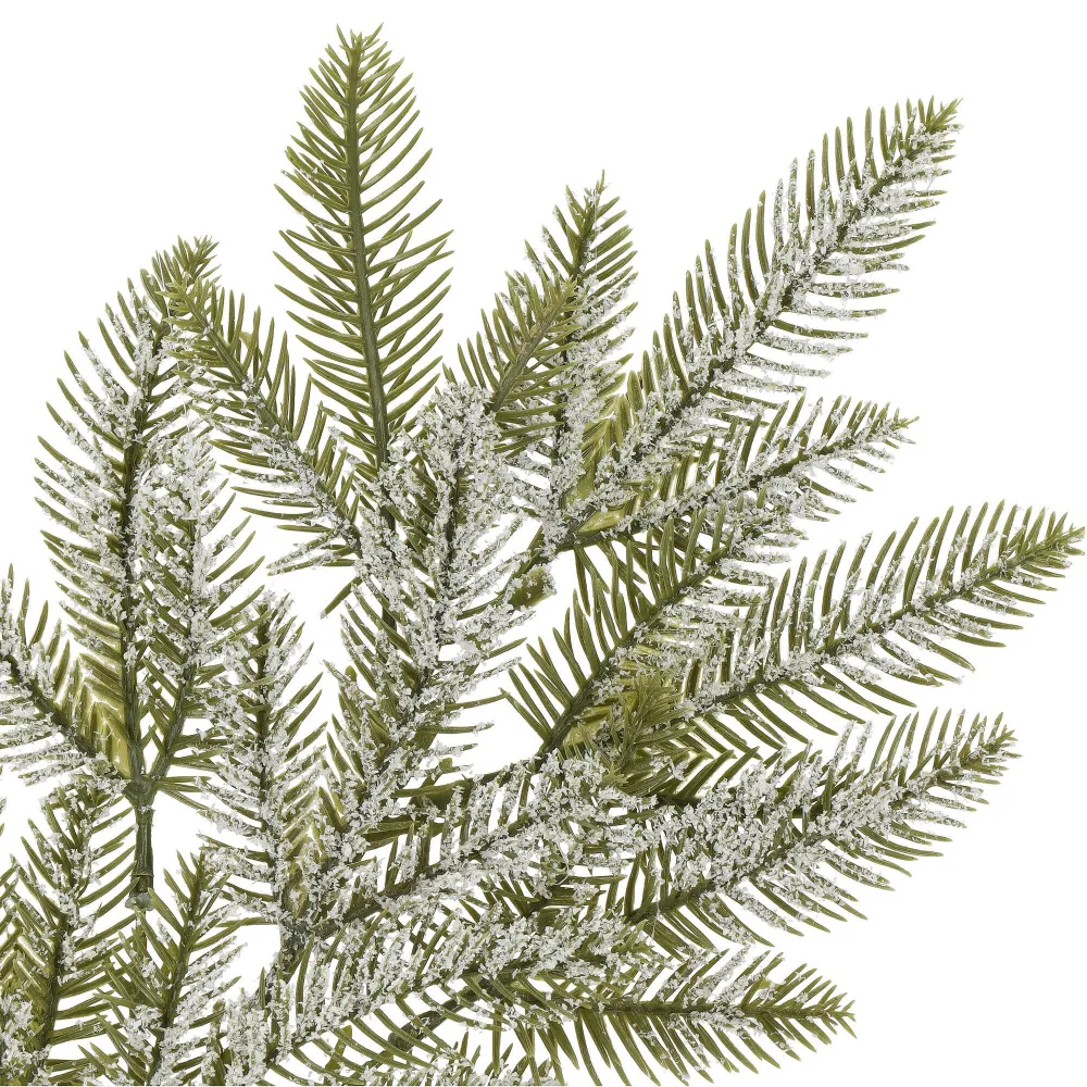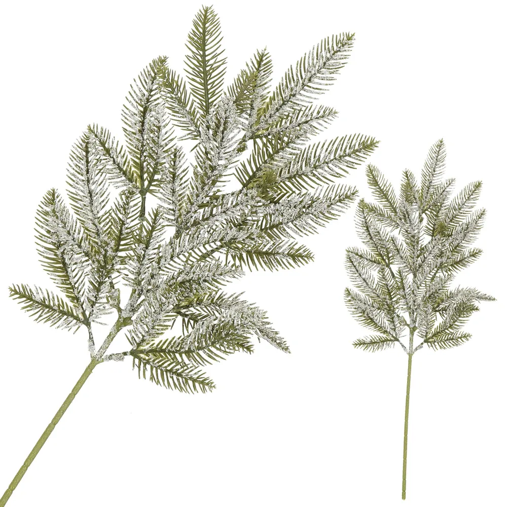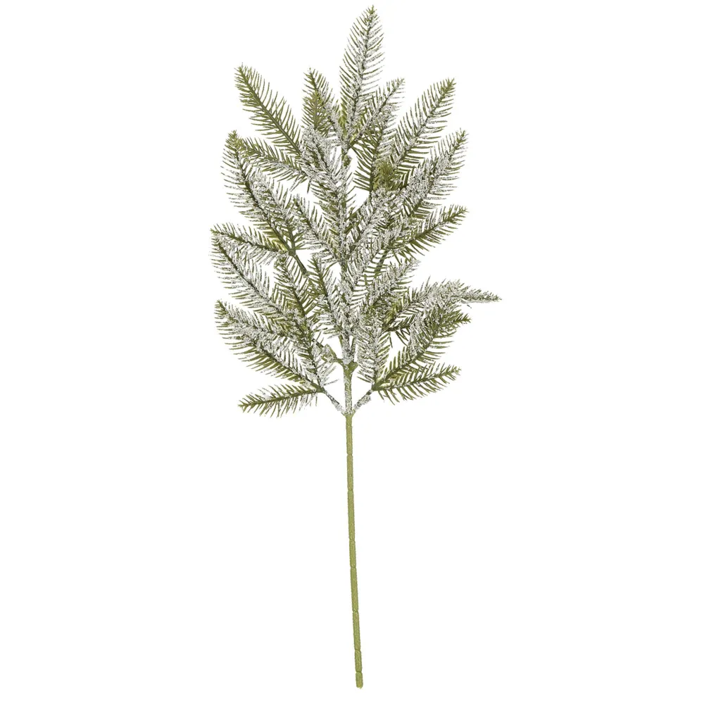 Umelá vetvička smreka s efektom námrazy, farba zelená, výška 68 cm, šírka 22 cm. Zúžený koniec pre ľahké zapichnutie. Prekrásna vianočná dekorácia, ktorá môže byť použitá samostatne, napr. na sviatočný stôl, do vázy alebo ako prvok väčších aranžmánov. Vhodné pre vnútorné aj vonkajšie použitie.
