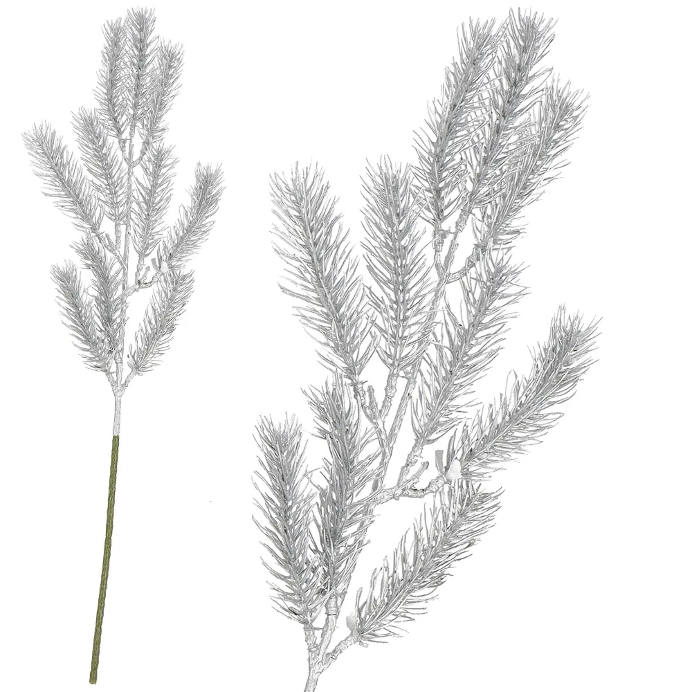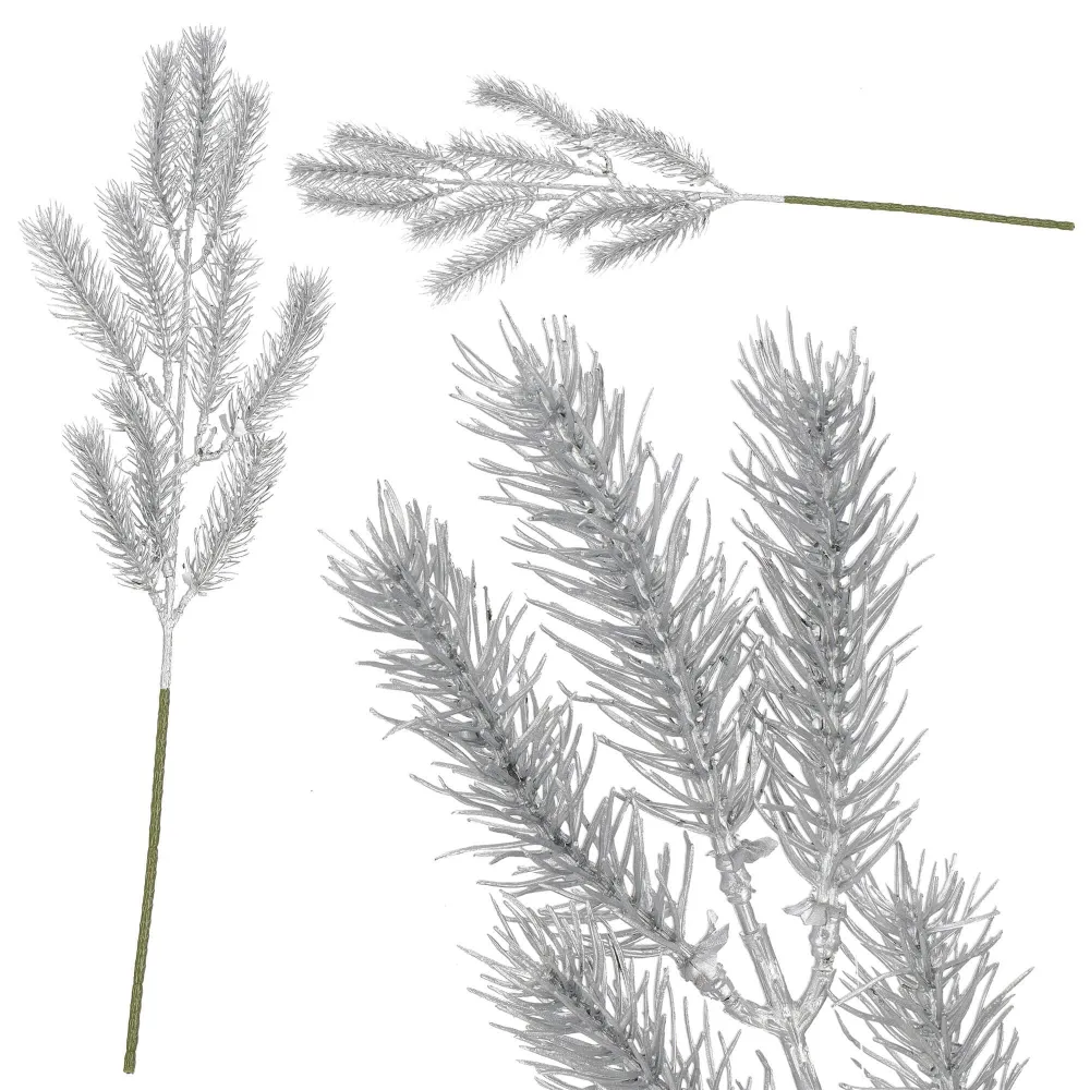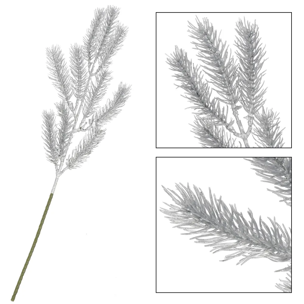Umelá vetvička jedľa, farba strieborná, výška 47 cm, šírka 15 cm. Zúžený koniec pre ľahké zapichnutie. Prekrásna vianočná dekorácia, ktorá môže byť použitá samostatne, napr. na sviatočný stôl, do vázy alebo ako prvok väčších aranžmánov. Vhodné pre vnútorné aj vonkajšie použitie.