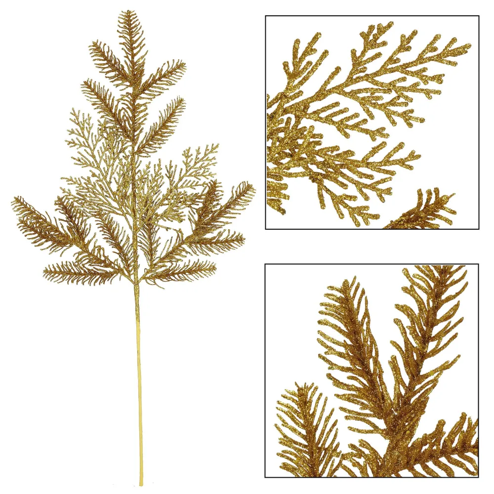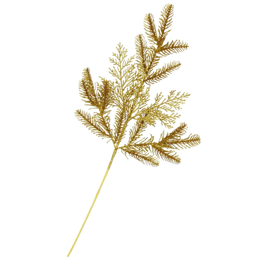 Umelá vetvička smreka, farba zlatá, výška 69 cm, šírka 29 cm. Zúžený koniec pre ľahké zapichnutie. Prekrásna vianočná dekorácia, ktorá môže byť použitá samostatne, napr. na sviatočný stôl, do vázy alebo ako prvok väčších aranžmánov. Vhodné pre vnútorné aj vonkajšie použitie.
