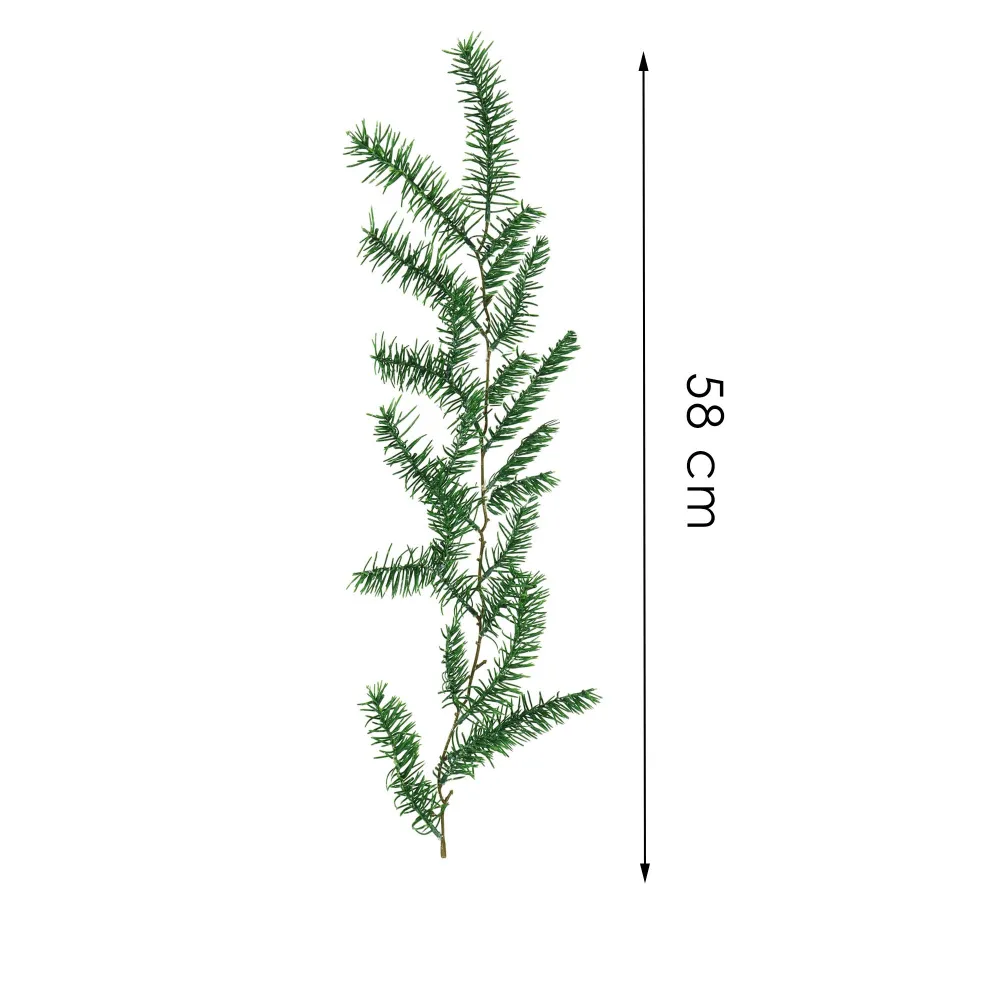 Umelá vetvička smreka s jemnými trblietkami, farba zelená, výška 58 cm. Vetvička je ohybná, dá sa teda ľahko tvarovať a prispôsobovať akémukoľvek aranžmánu. Prekrásna vianočná dekorácia, ktorá môže byť použitá aj samostatne, napr. na sviatočný stôl, do vázy a iné. Vhodné pre vnútorné aj vonkajšie použitie.