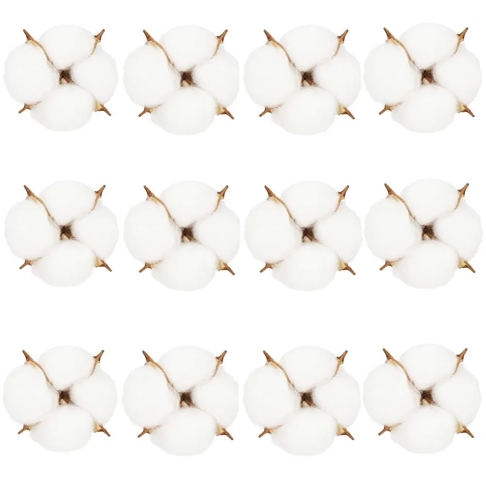Súprava 12 kusov kvetov bavlny z prírodného materiálu, veľkosť kvetu 5 cm.