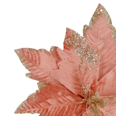 Umelý kvet vianočnej ruže s ružovými okvetnými lístkami zdobenými trblietkami. Realistické spracovanie, ohybná stonka pre ľahké pripevnenie do rôznych vianočných aranžmánov. Skvele sa tiež hodí ako ozdoba stromčeka alebo ako samostatná dekorácia. Veľkosť 29x34 cm, ružová farba.