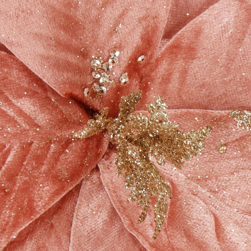 Umelý kvet vianočnej ruže s ružovými okvetnými lístkami zdobenými trblietkami. Realistické spracovanie, ohybná stonka pre ľahké pripevnenie do rôznych vianočných aranžmánov. Skvele sa tiež hodí ako ozdoba stromčeka alebo ako samostatná dekorácia. Veľkosť 29x34 cm, ružová farba.