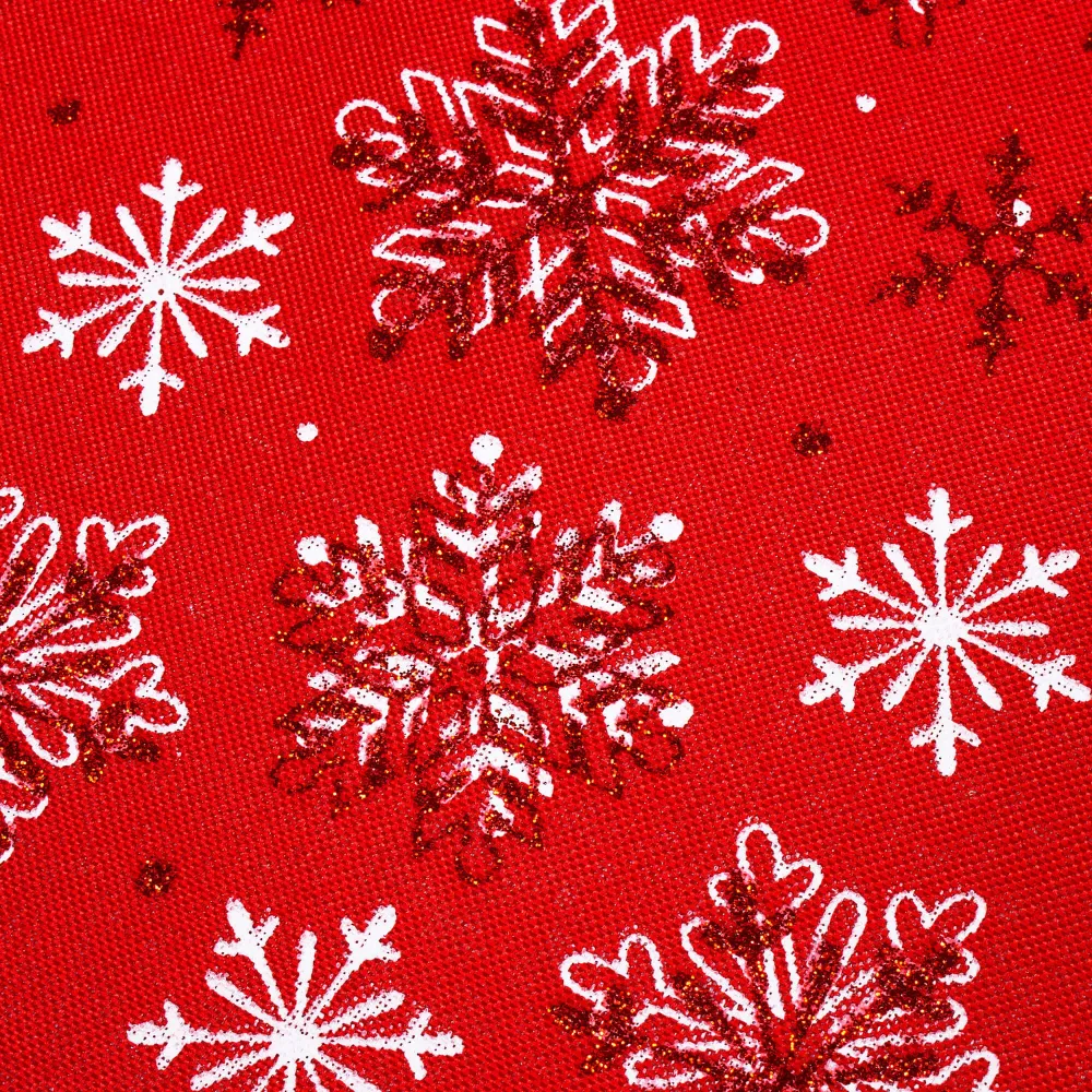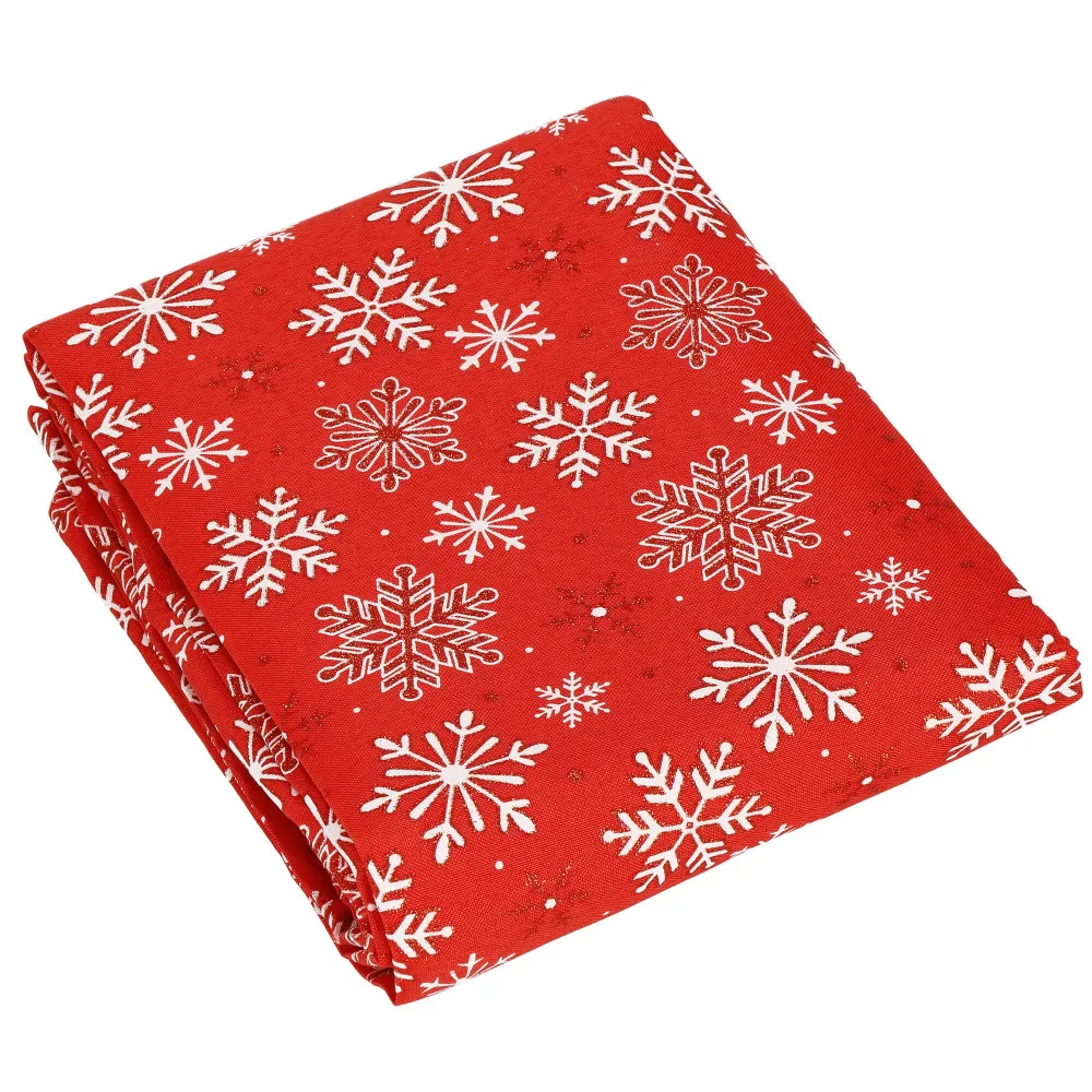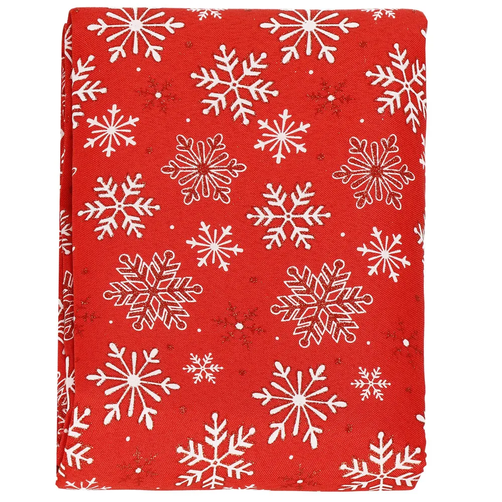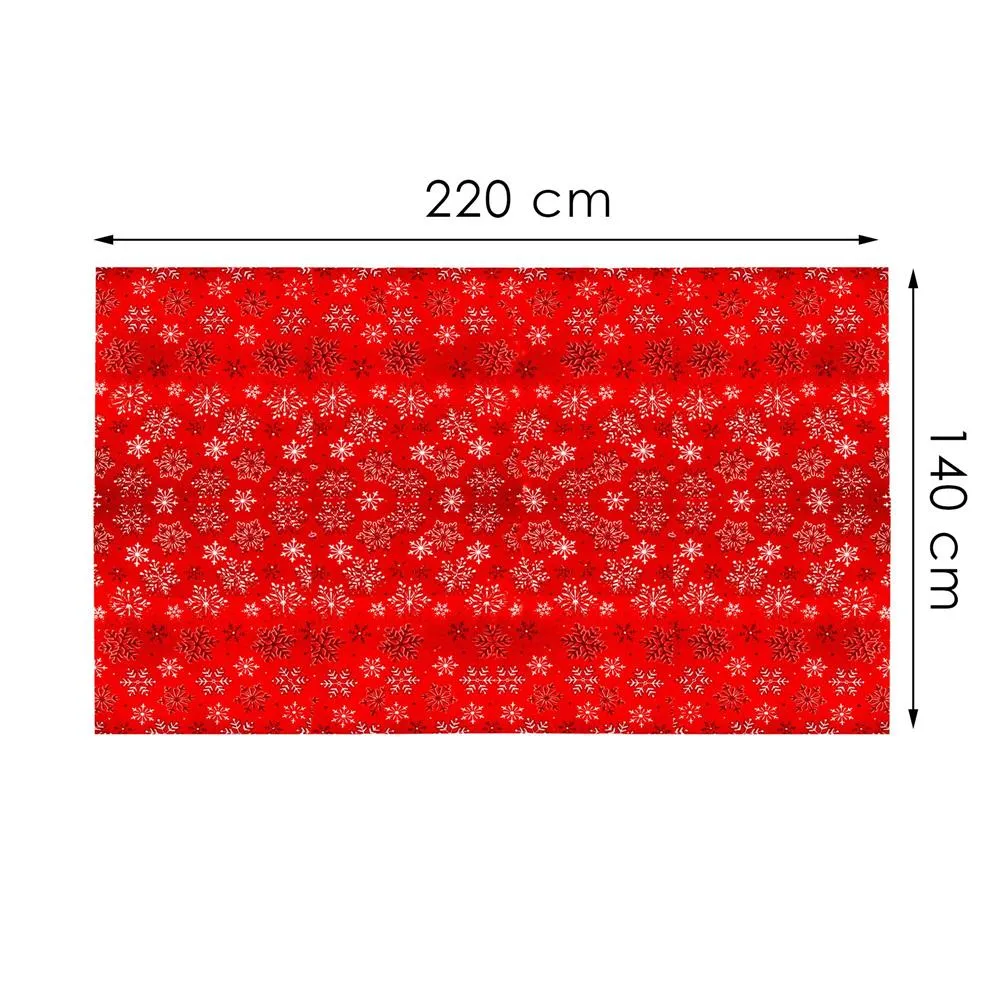 Nádherný vianočný obrus na stôl s motívom bielych a trblietavých vločiek na červenom podklade. Rozmery 220x140 cm. Vianočná dekorácia, ktorá sa stane ozdobou každého interiéru a dodá mu krásne zimné kúzlo.
