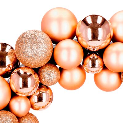 Elegantný vianočný veniec v odtieni ružového zlata dodá vášmu domovu slávnostný a moderný vzhľad. Vyrobený z nerozbitného plastového materiálu, ideálny na zavesenie na dvere alebo ako dekorácia na sviatočný stôl. Súčasťou je pútko na ľahké zavesenie. Vhodný pre vnútorné aj vonkajšie použitie. Priemer 34 cm.