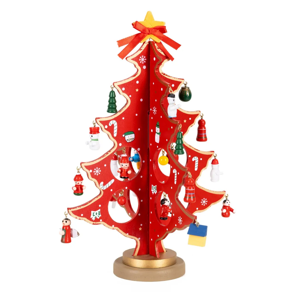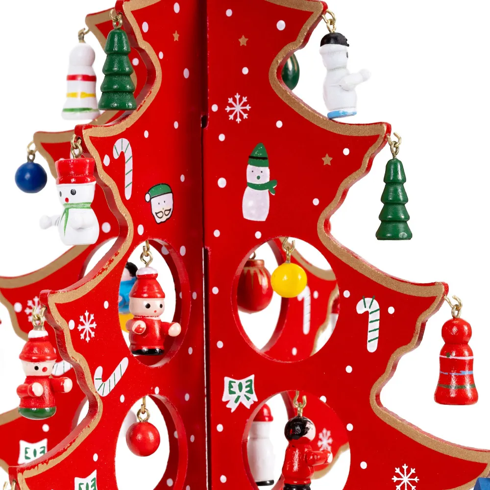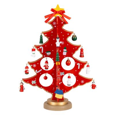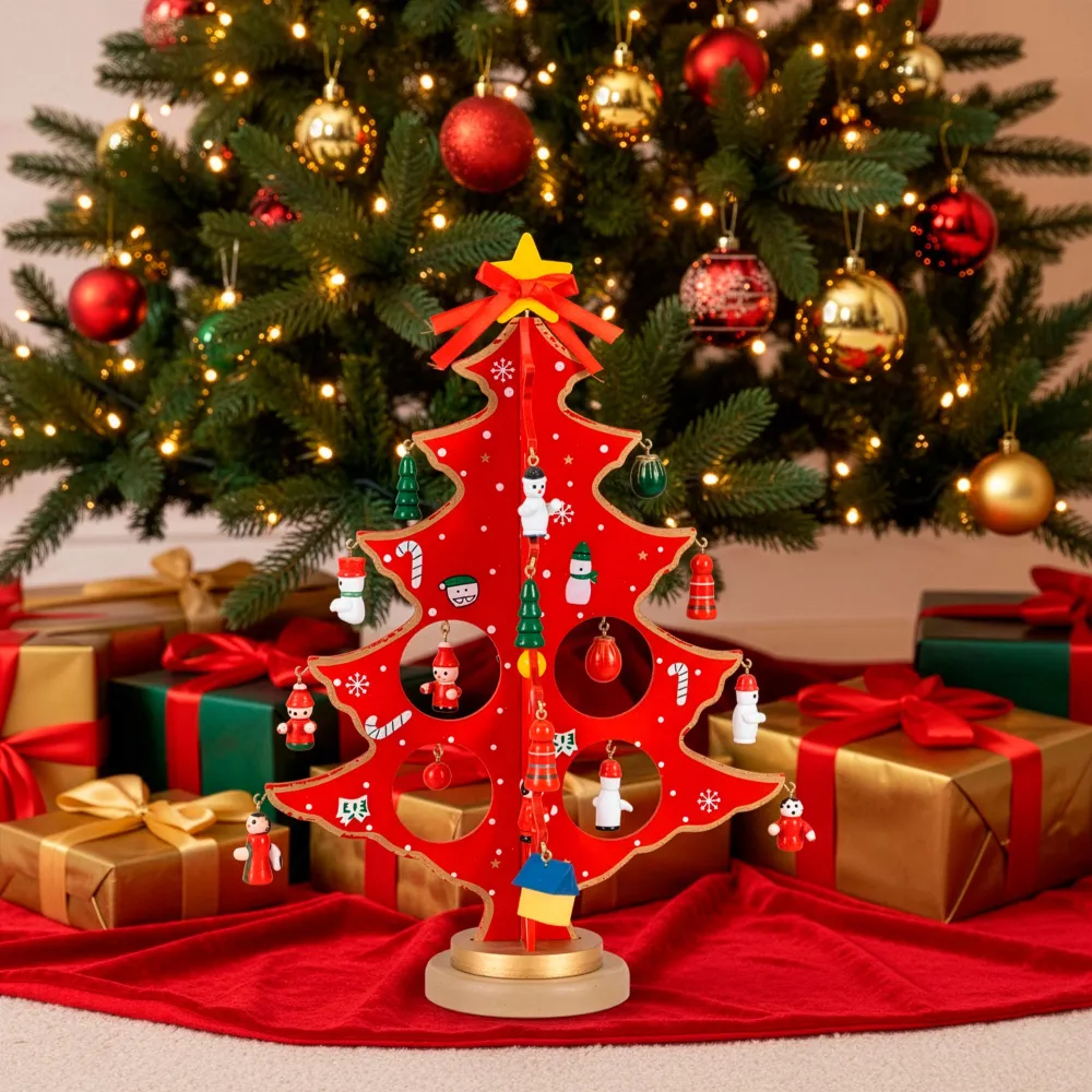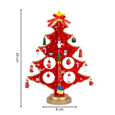 Čarovná červená vianočná dekorácia z dreva krásne rozjasní každý interiér. Stromček je skladací, znovu použiteľný a doplnený približne 25 roztomilými ozdobami v pestrých farbách. Vďaka pevnému drevenému prevedeniu pôsobí kvalitne a stabilne. Ideálna na komodu, stôl či detskú izbu, kde navodí radostnú sviatočnú atmosféru.