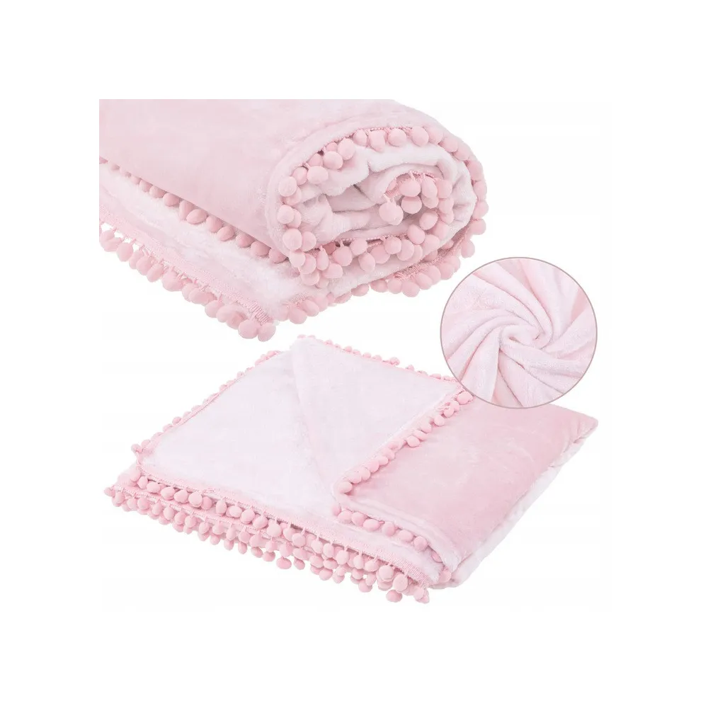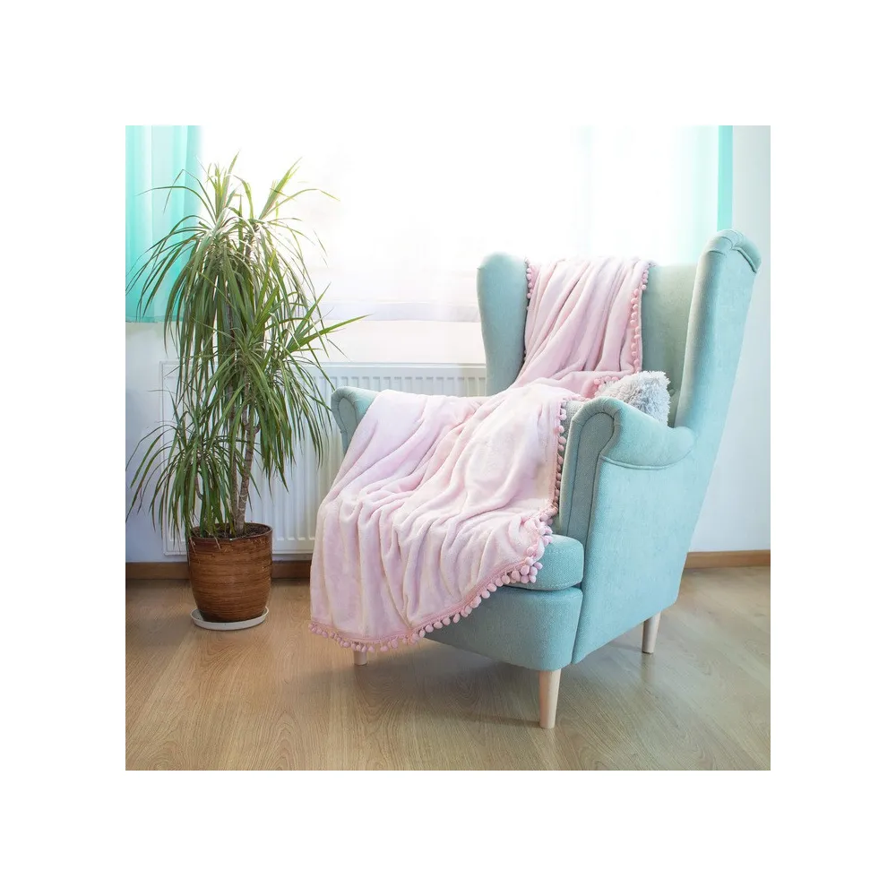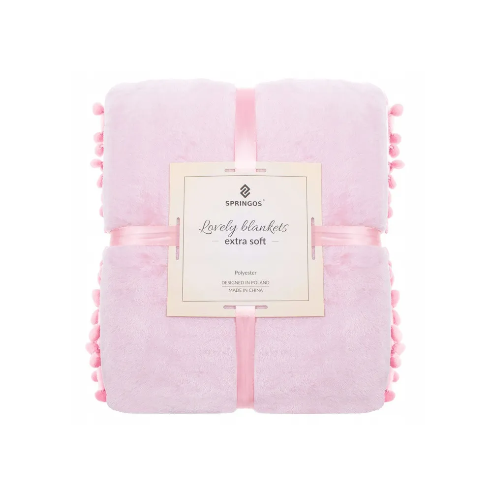 Deka 200x220 cm s brmbolcami SPRINGOS BOHO ružová