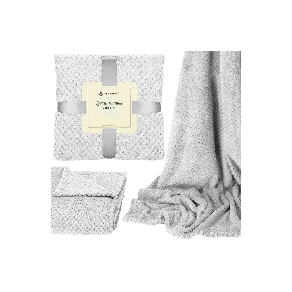 Mäkká a príjemná deka Springos je dokonalým riešením pre dlhé jesenné večery pri krbe. Vďaka jeho mimoriadne peknej a útulnej štruktúre sa v ňom budete cítiť veľmi príjemne. Jemné farby skvele zapadnú do každého aranžmánu a zahrejú interiér. Elegantne tiež pôsobí reliéfny vzor z oboch strán. Výrobok je veľmi príjemný na dotyk vďaka plyšovému materiálu z polyesteru. Doplnkovou ozdobou deky je krásny, módny vzor. Deku je možné použiť ako prehoz na kreslo alebo posteľ.