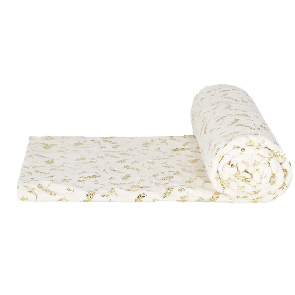 Deka SPRINGOS FLORAL je ideálnou voľbou pre všetkých, ktorí hľadajú kombináciu komfortu, elegancie a praktickosti. Jej obojstranný dizajn ponúka dve rôzne textúry: jedna strana je plyšová so zlatým kvetinovým vzorom , ktorá prináša do vášho interiéru nádych luxusu, zatiaľ čo druhá strana je plyšová bez potlače , čo poskytuje jemný a čistý vzhľad.