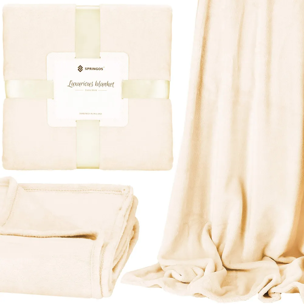 Plyšová deka 200x220 cm SPRINGOS HA7301 krémová