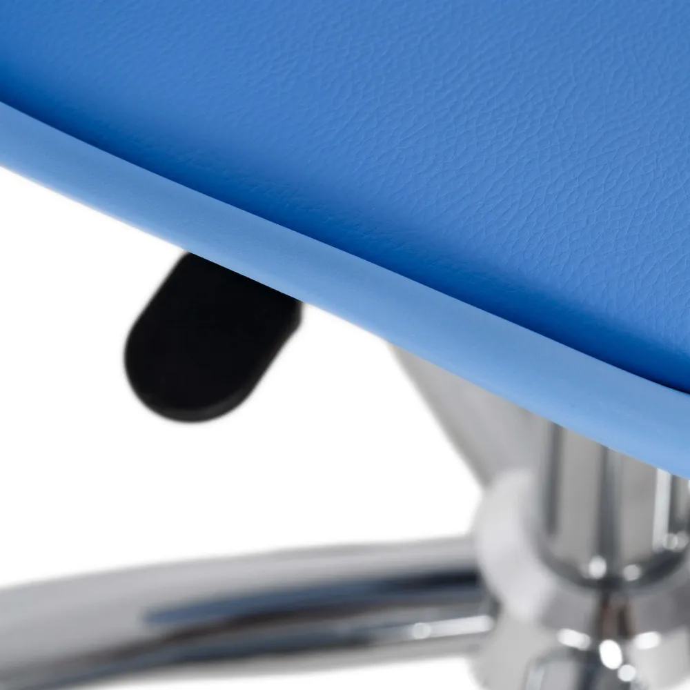 Štýlová otočná stolička k písaciemu stolu v modrej farbe. Ideálne do detskej, študentskej i tínedžerskej izby. Výškovo nastaviteľná, s hladkými kolieskami a ergonomickým tvarom pre zdravé sedenie. Mäkký polstrovaný sedák zaisťuje pohodlie pri učení aj hraní. Jemné pastelové tóny a operadlo s výrezmi v tvare labky dodajú izbe hravý vzhľad. Jednoduchá údržba a odolné spracovanie - ideálne k PC aj na domáce úlohy. Nosnosť 120 kg.