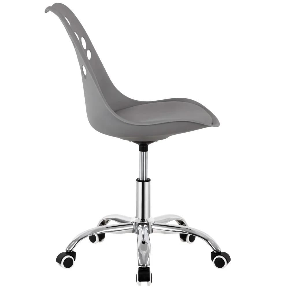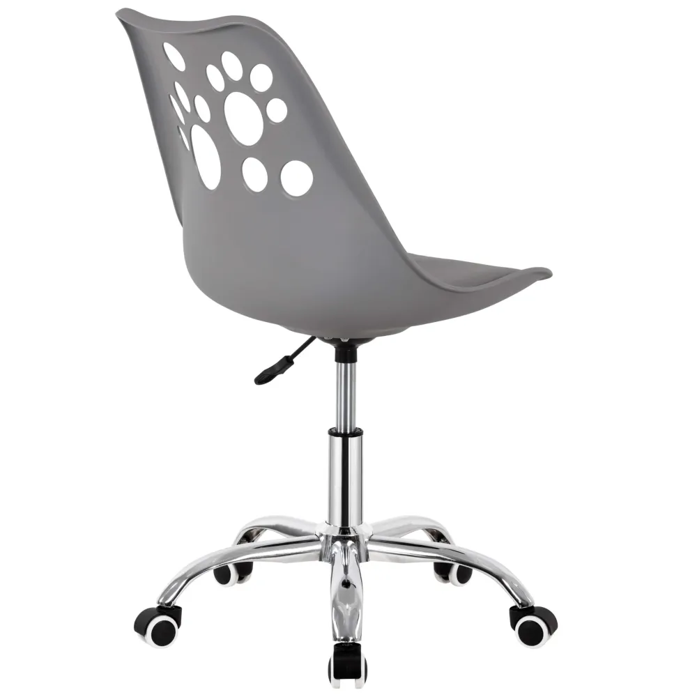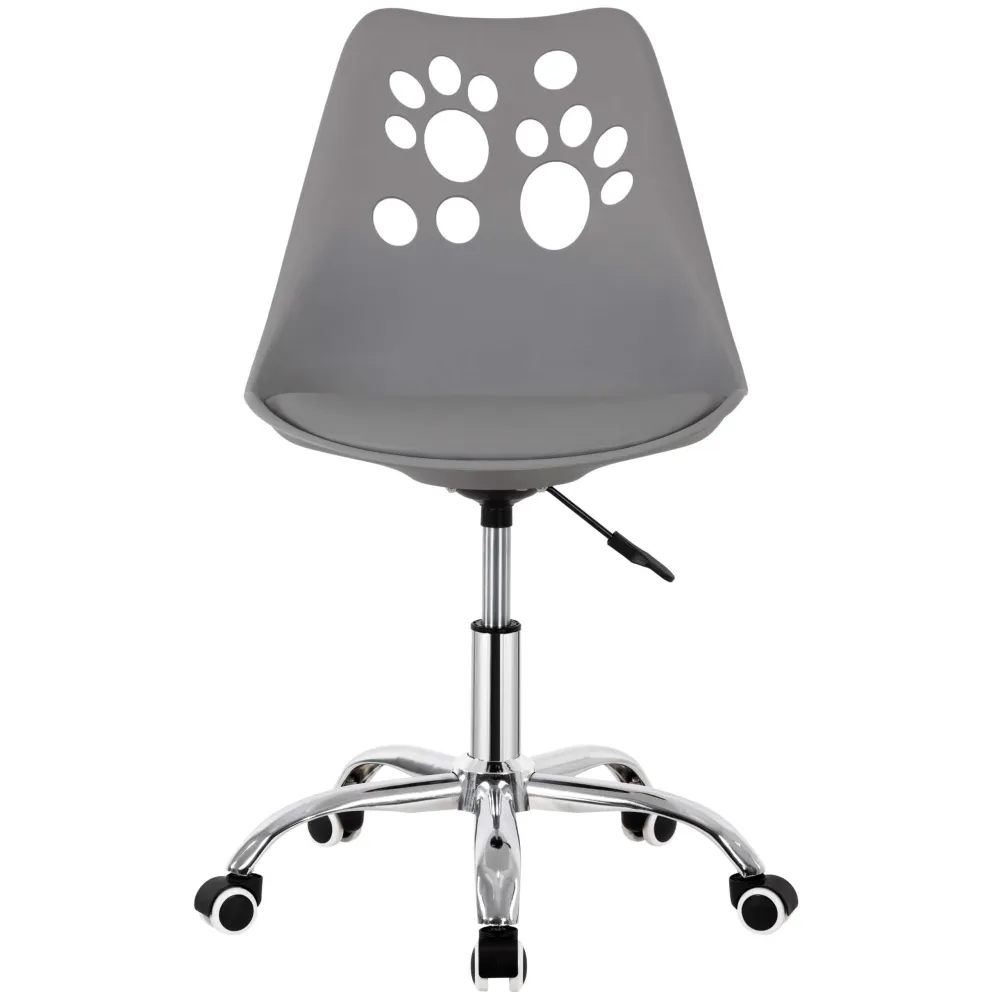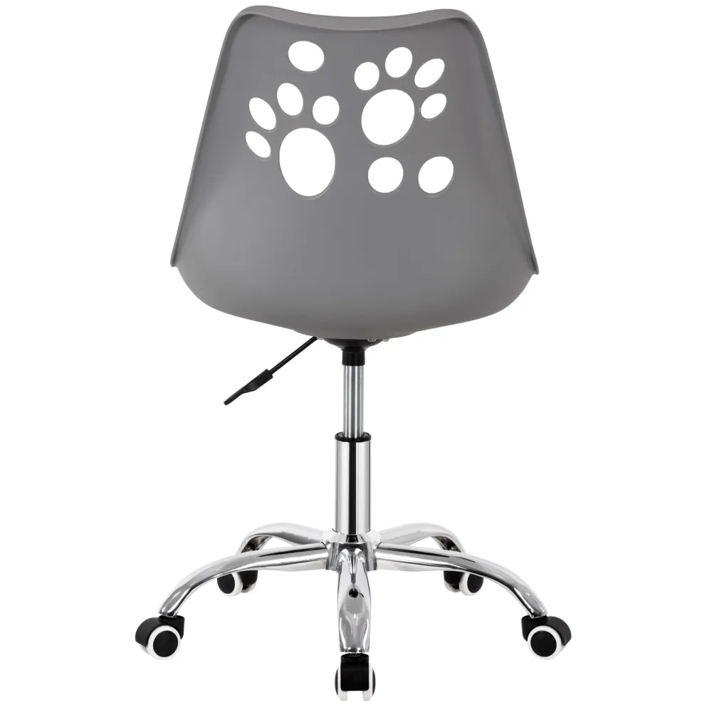 Štýlová otočná stolička k písaciemu stolu v šedej farbe. Ideálne do detskej, študentskej i tínedžerskej izby. Výškovo nastaviteľná, s hladkými kolieskami a ergonomickým tvarom pre zdravé sedenie. Mäkký polstrovaný sedák zaisťuje pohodlie pri učení aj hraní. Jemné pastelové tóny a operadlo s výrezmi v tvare labky dodajú izbe hravý vzhľad. Jednoduchá údržba a odolné spracovanie - ideálne k PC aj na domáce úlohy. Nosnosť 120 kg.