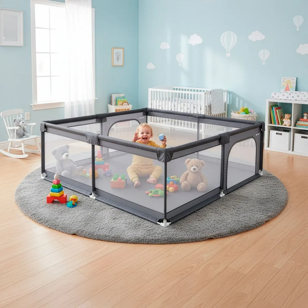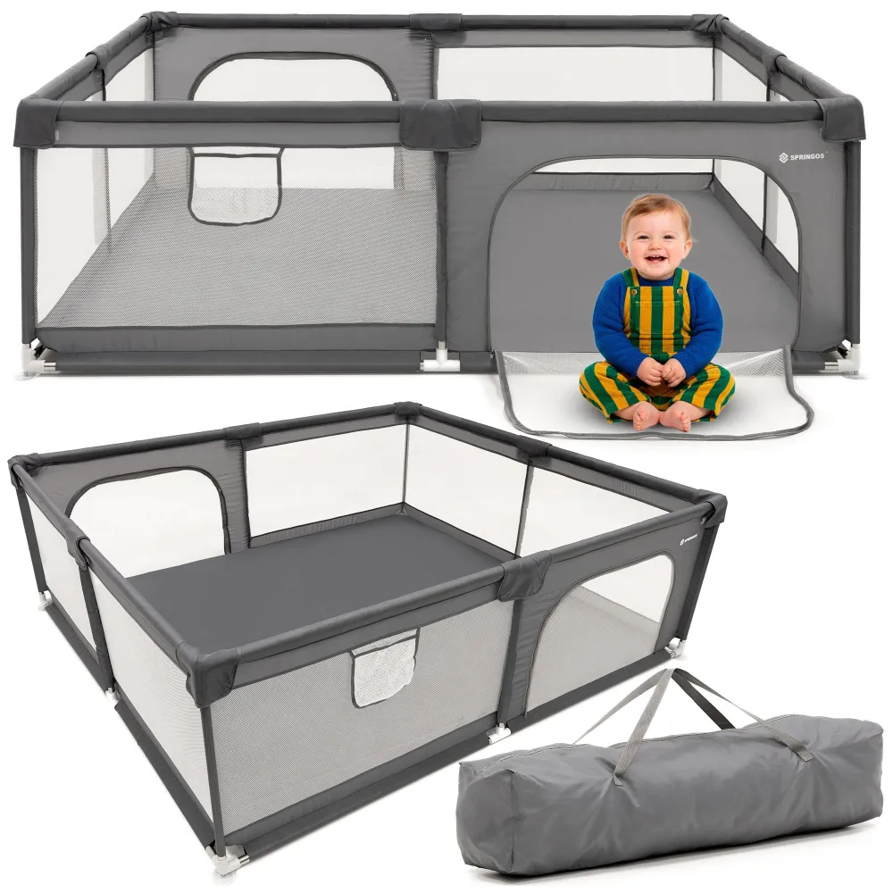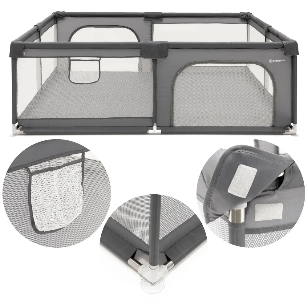 Ohrádka pre deti 180x150x66 cm SPRINGOS HA7528 sivá poskytuje dieťaťu bezpečný a priestranný priestor pre hru aj odpočinok v domácom prostredí. Vďaka pevnej konštrukcii z nerezovej ocele je stabilná a odolná pri každodennom používaní. Sieťované steny zaisťujú dobrú viditeľnosť a cirkuláciu vzduchu , takže má rodič dieťa neustále pod kontrolou.