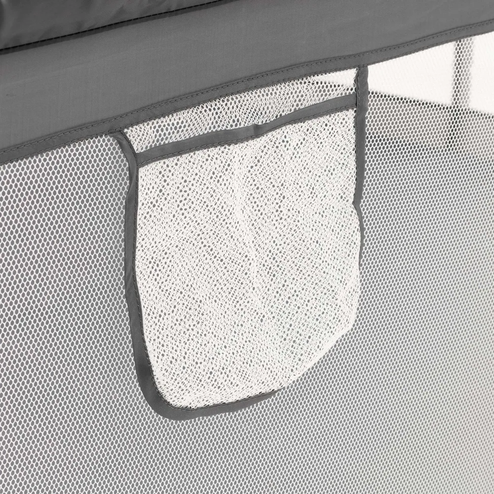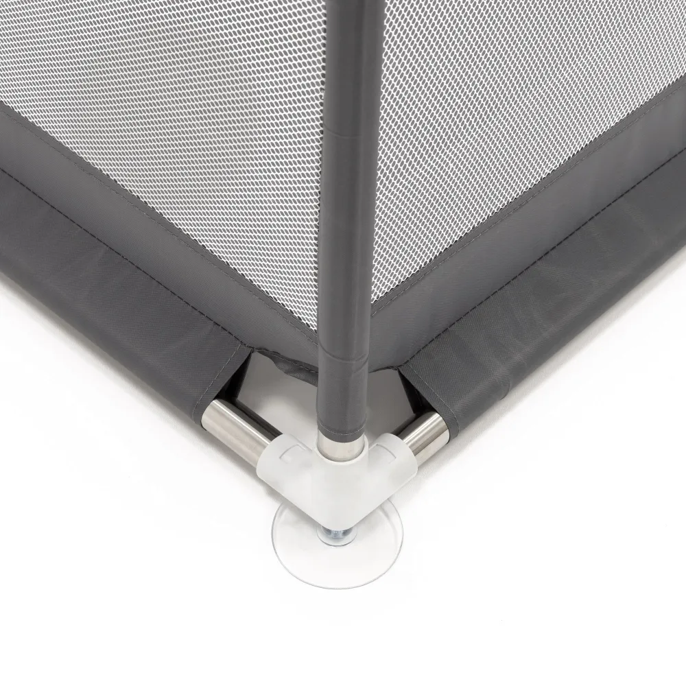 Praktickým prvkom je vstup so zipsom , ktorý umožňuje pohodlný prístup do ohrádky bez nutnosti ju rozoberať. K vyššej stabilite prispievajú protišmykové prísavky , vďaka ktorým ohrádka dobre drží na mieste aj pri aktívnej hre. Nechýba ani integrované vrecko , ideálne na uloženie hračiek, plienok alebo iných drobností.