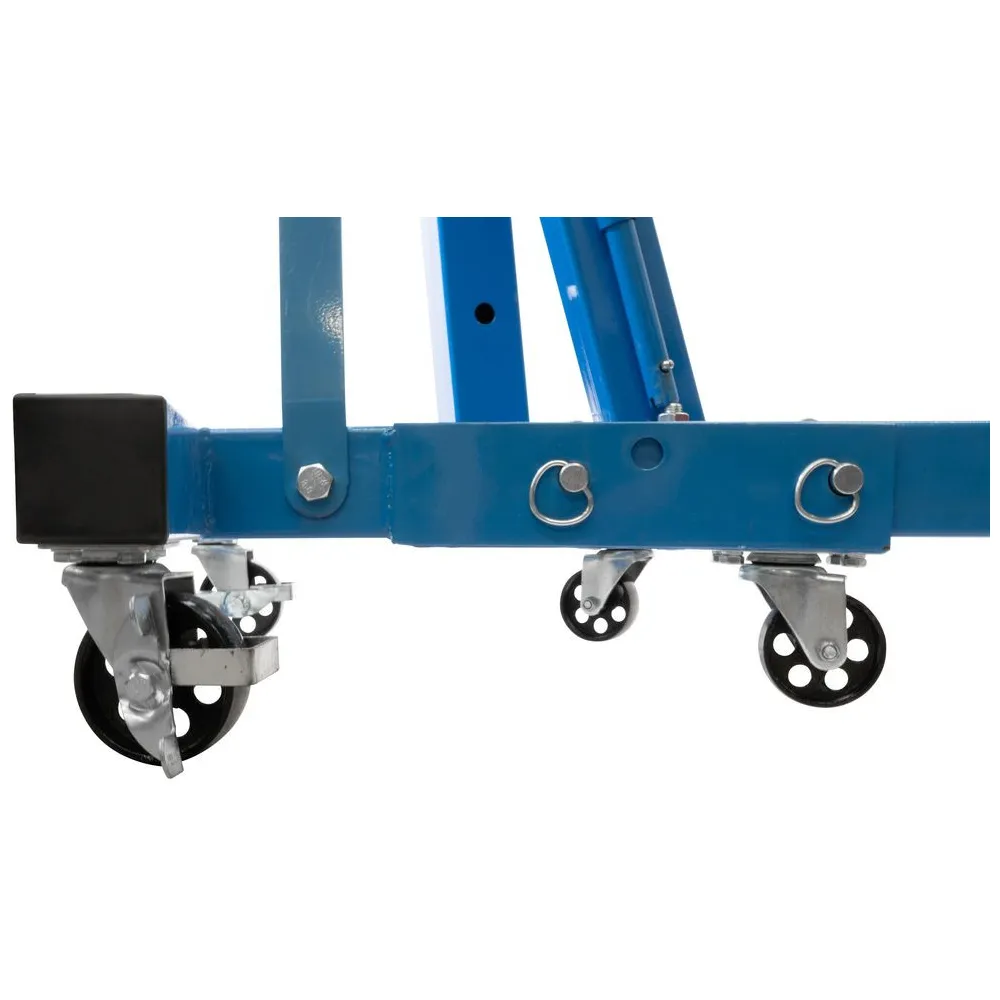 Dielenský žeriav sa osvedčí pri náročných zdvíhacích prácach v dielni, najmä pri zdvíhaní motorov a iných ťažkých komponentov. Tento ručný žeriav bol špeciálne vyvinutý pre bezpečnú a efektívnu manipuláciu s bremenami do hmotnosti 1000 kg. Jeho silné stránky spočívajú v kombinácii výkonnosti a prispôsobivosti: vďaka nastaviteľným nástavcom sa ľahko prispôsobia veľkosti a tvaru najrôznejších bremien. Maximálna výška zdvihu 216 cm umožňuje zdvíhanie bremien aj do vyššie položených miest. Napriek robustnej konštrukcii a vysokej nosnosti prekvapí žeriav v zloženom stave svojou kompaktnosťou, čo uľahčuje skladovanie a prepravu. Vybavený poistným ventilom, ktorý zabraňuje preťaženiu a zaisťuje bezpečnú prevádzku. Základný rám je vyrobený z robustnej štvorhrannej rúrky (70x70x2, 5mm), ponúka vysokú stabilitu a dlhú životnosť. Dve brzdiace kolieska, ktoré zaisťujú väčšiu bezpečnosť a stabilitu pri zdvíhaní bremien. Rukoväť na manévrovanie uľahčuje pohyb a nastavenie polohy žeriava. Univerzálne použiteľný – na profesionálne použitie v dielňach a priemyselných oblastiach. Kompaktná konštrukcia, ktorá umožňuje ľahkú manipuláciu aj napriek vysokej výkonnosti.