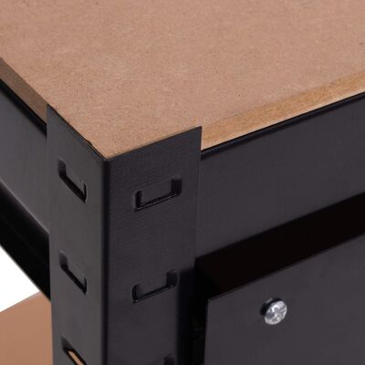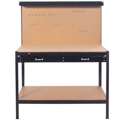 Dielenský ponk s pevnou kovovou konštrukciou a MDF policami je ideálnym pracovným stolom do dielne. Ponúka širokú pracovnú dosku o rozmere 120×60 cm s nosnosťou až 200 kg, priestranný šuplík s prepážkou aj dve police na uloženie náradia. Perforovaná stena s háčikmi uľahčí organizáciu. Antikorózna úprava zaistí dlhú životnosť a poriadok v každej dielni.