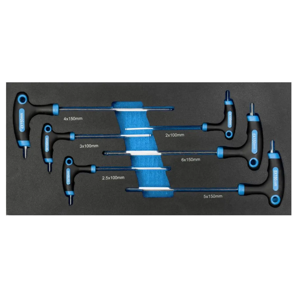 - 6 imbusových kľúčov s guľovou hlavou: 2, 2.5, 3, 4, 5, 6 mm