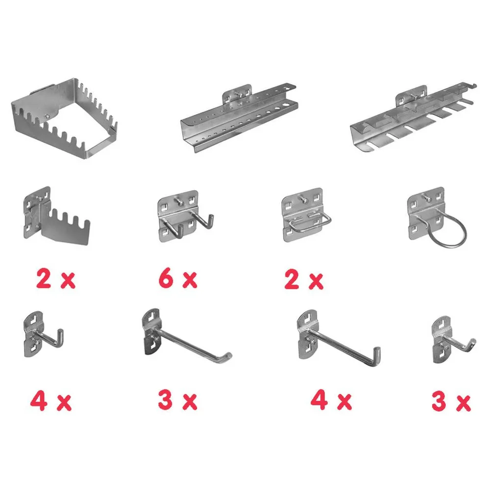 Jednoduchý kovový držiak na náradie na perforované dielenské steny. Ľahko sa zavesí do otvorov panela a umožňuje prehľadné a bezpečné uloženie...