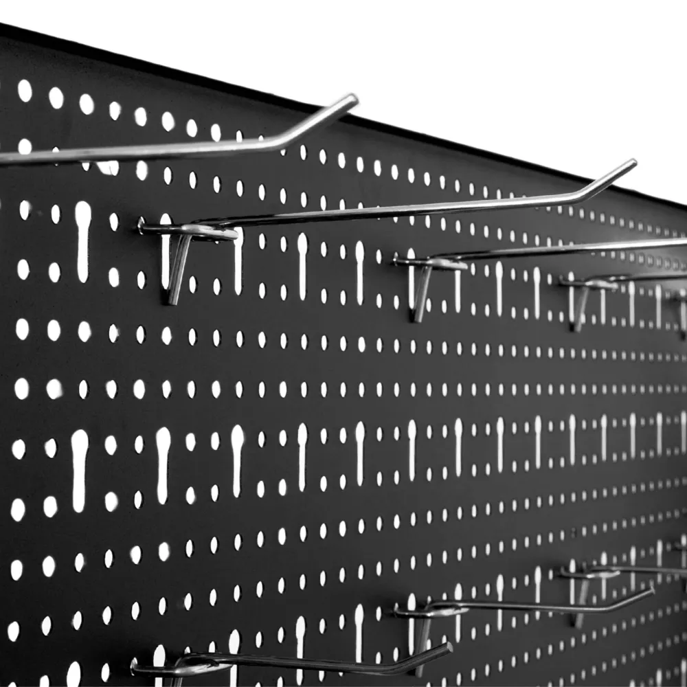 - Perforovaná stena s 10 háčikmi na zavesenie náradia