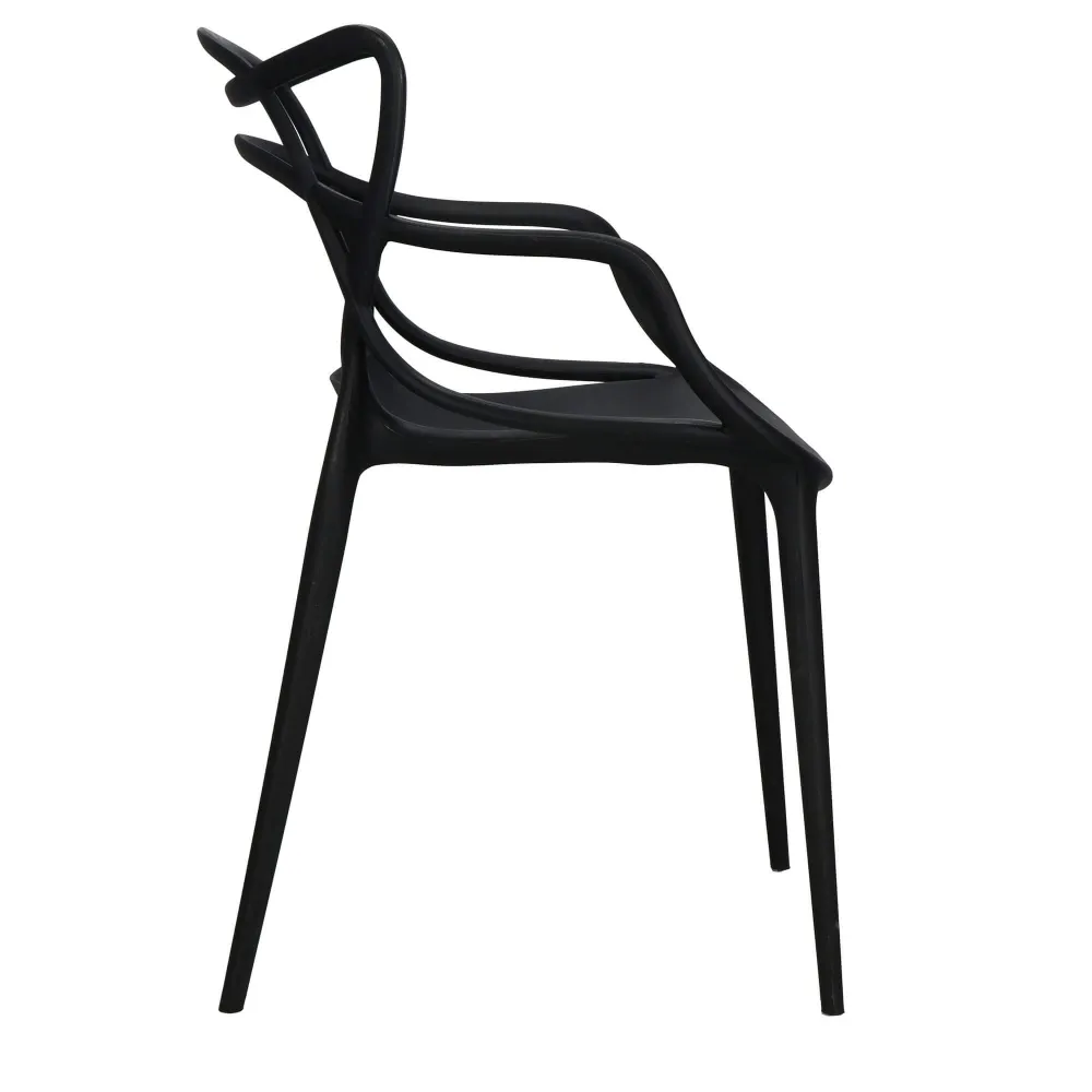 Ultramoderná dizajnová stolička, ktorá sa skvele hodí do spálne, kuchyne, jedálne aj na terasu. Ergonomický tvar a pohodlná opierka chrbta zaisťujú komfortné sedenie. Kombinuje eleganciu s funkčnosťou, precízne spracované detaily dodávajú stoličke výnimočný štýl. Krytky nôh chránia podlahu, nosnosť 125 kg.