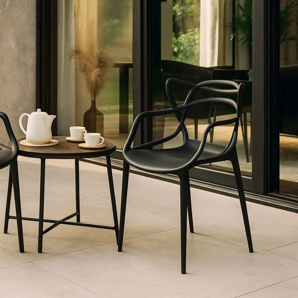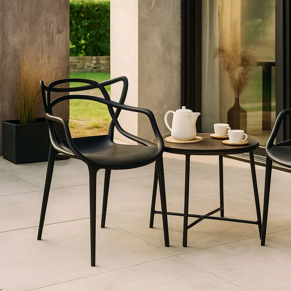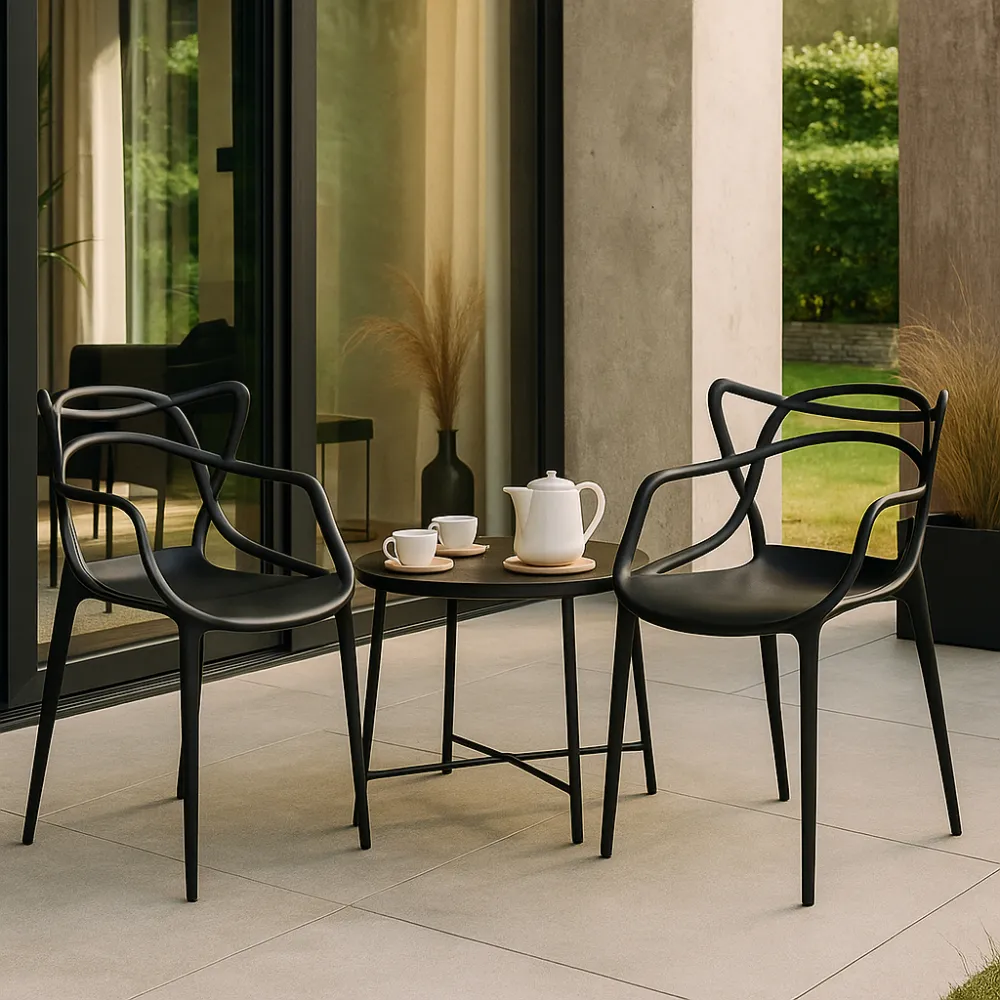 Dizajnová stolička SPRINGOS MATRIX čierna vyniká svojim ultramoderným a jedinečným vzhľadom , ktorý z nej robí štýlový doplnok každého interiéru. Vďaka svojmu čistému a nadčasovému dizajnu sa skvele hodí do spálne, jedálne, kuchyne, obývacej izby , ale aj na terasu či balkón . Stolička prirodzene spája eleganciu a funkčnosť , čím si získa pozornosť aj v náročnejšie ladených priestoroch.