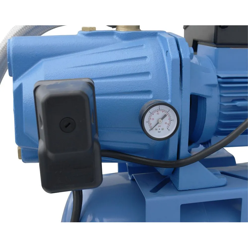 Domáca vodáreň s telesom čerpadla z oceľovej liatiny, oceľová nádrž, obežné koleso z nerezu, mechanické tesnenie, odvzdušňovací ventil a vypúšťacia skrutka, vypínač, tepelná ochrana a spínač ochrany motora, tlakový spínač, tlakomer.