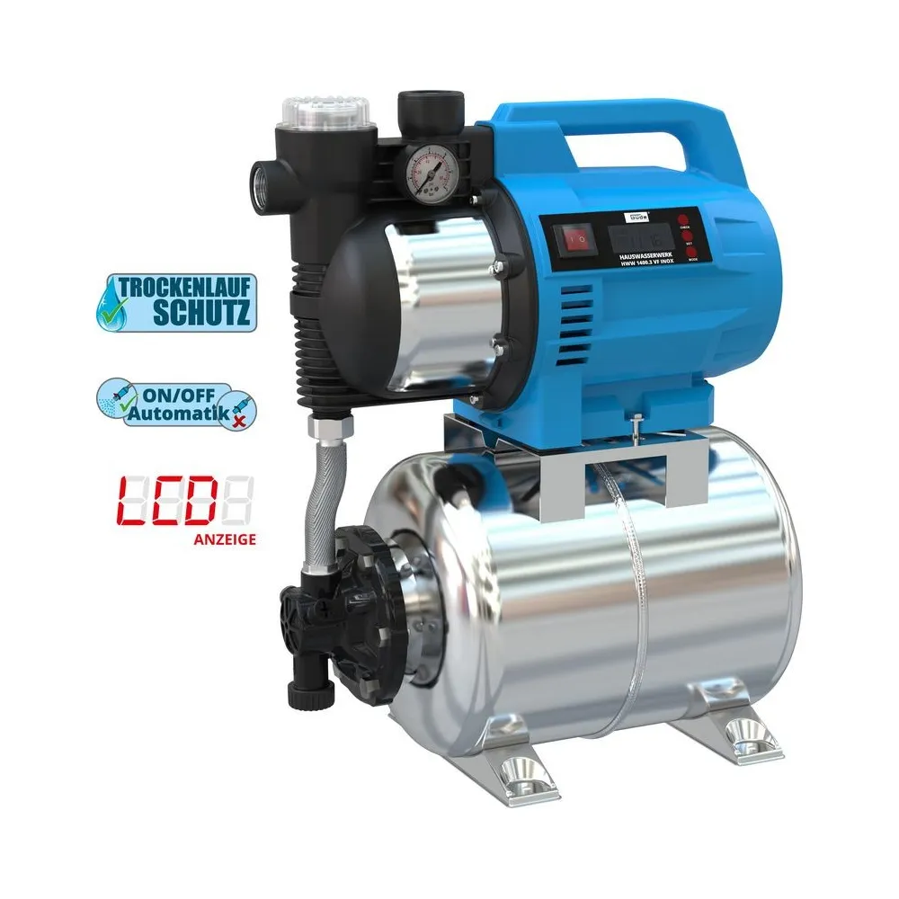 Domáca vodáreň s telesom čerpadla z nárazu odolného plastu, nádrž z nehrdzavejúcej ocele, obežné koleso z norylu, mechanické tesnenie, skrutka na vypúšťanie vody, vypínač, tepelná ochrana a spínač ochrany motora, automatický tlakový spínač s ochranou proti chodu nasucho. LCD displej pre prietok a výtlak, funkcia časovača (predvoľba času spustenia a ukončenia), integrovaný vodný filter. Na automatický prívod vody, zavlažovanie domu, dvora a záhrady dažďovou vodou alebo podzemnou vodou, na dopravu vody zo studní a cisterien.
