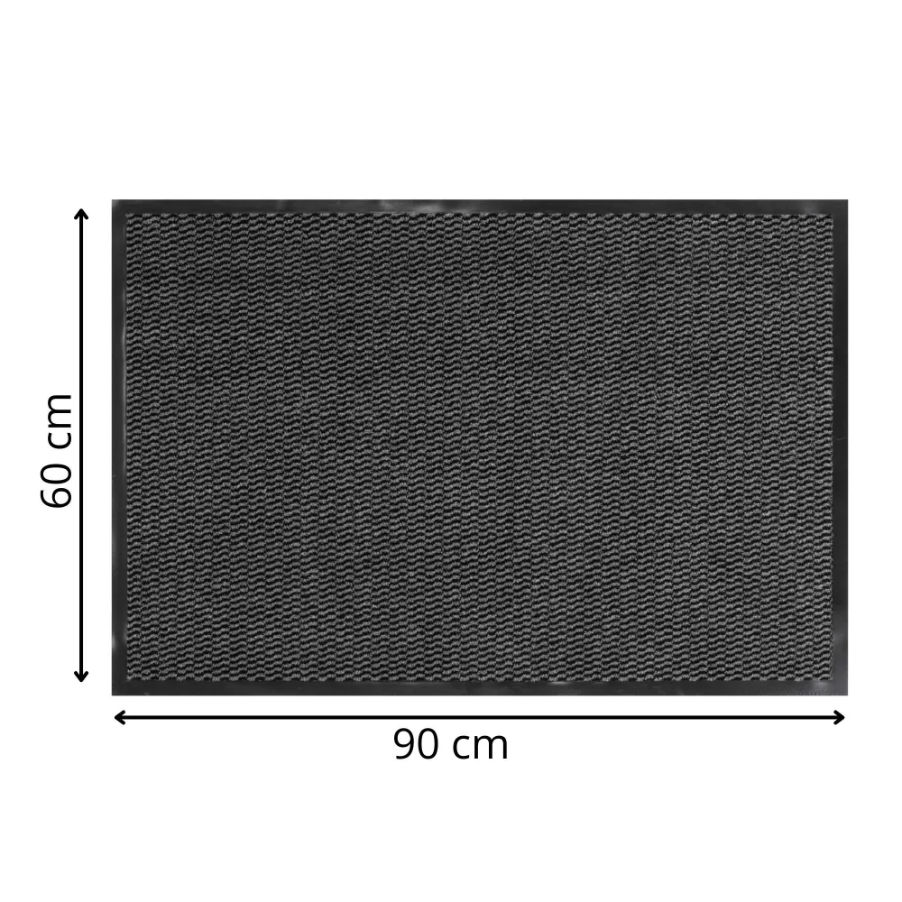 Praktický doplnok k dverám, ktorý obmedzuje zanášanie špiny a vlhkosti do interiéru. Vďaka väčšej ploche poskytuje dostatok priestoru pre pohodlné očistenie topánok a pomáha udržať interiér čistý. Odolný povrch je vhodný na časté používanie, pevný okraj drží tvar a spodná strana zaisťuje stabilitu bez posúvania na podlahe. Rozmery: 60x90 cm.