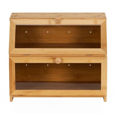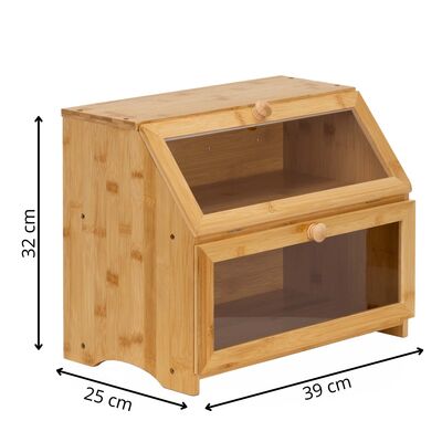 Drevený chlebník SPRINGOS KI0162 prírodný je praktickým a elegantným riešením na ukladanie pečiva v kuchyni. Vďaka dvojposchodovému prevedeniu ponúka dostatok priestoru pre rôzne druhy chleba, pečiva i sladkostí a pomáha uchovať potraviny dlhšie čerstvé . Je vyrobený z kvalitného bambusu vhodného na styk s potravinami , ktorý vyniká odolnosťou a príjemným prírodným vzhľadom. Priehľadné akrylové okienka umožňujú ľahkú kontrolu obsahu bez nutnosti otvárania.
