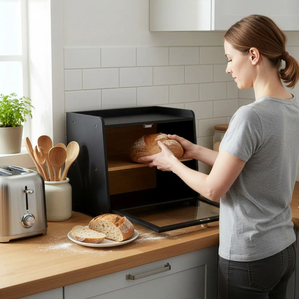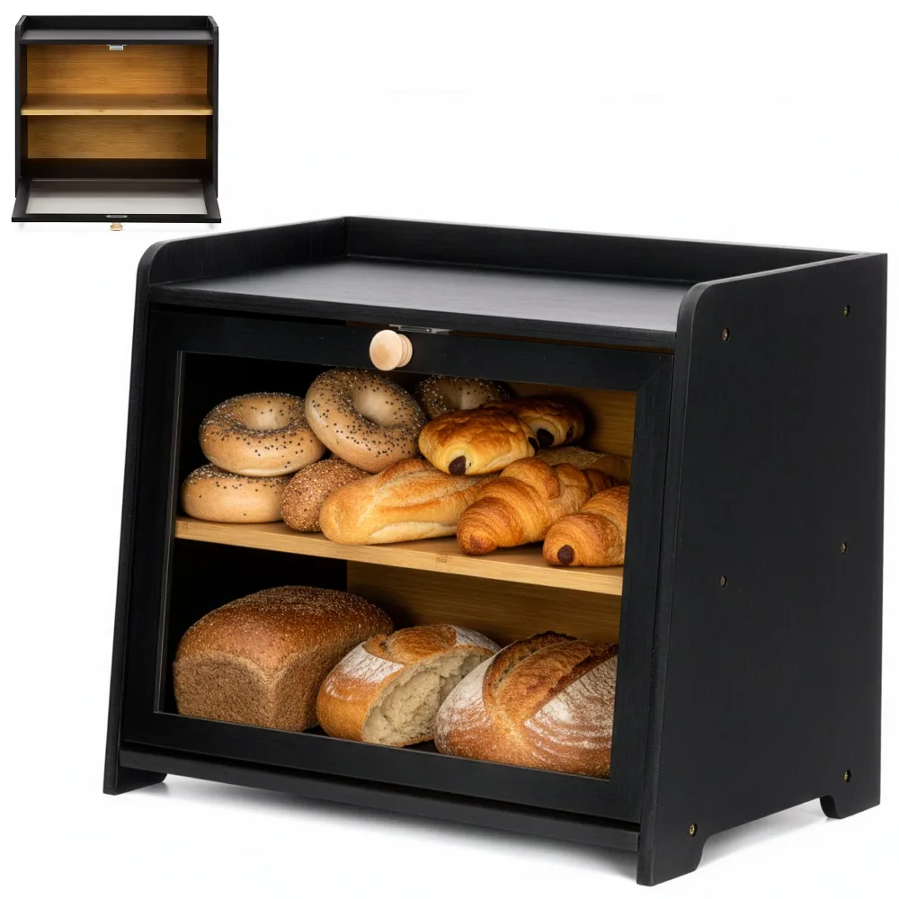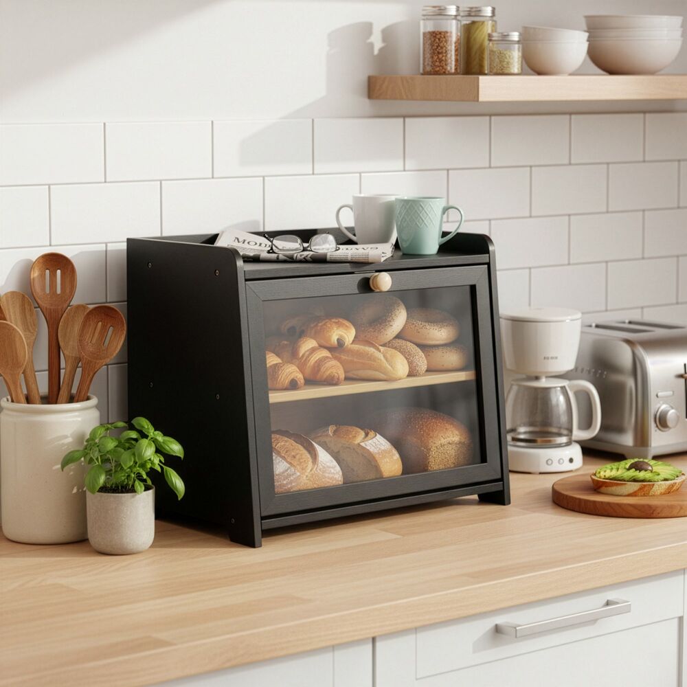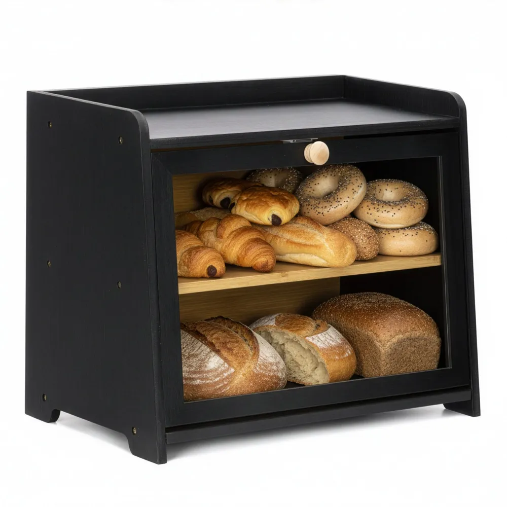 - Drevený chlebník v elegantnom čiernom prevedení