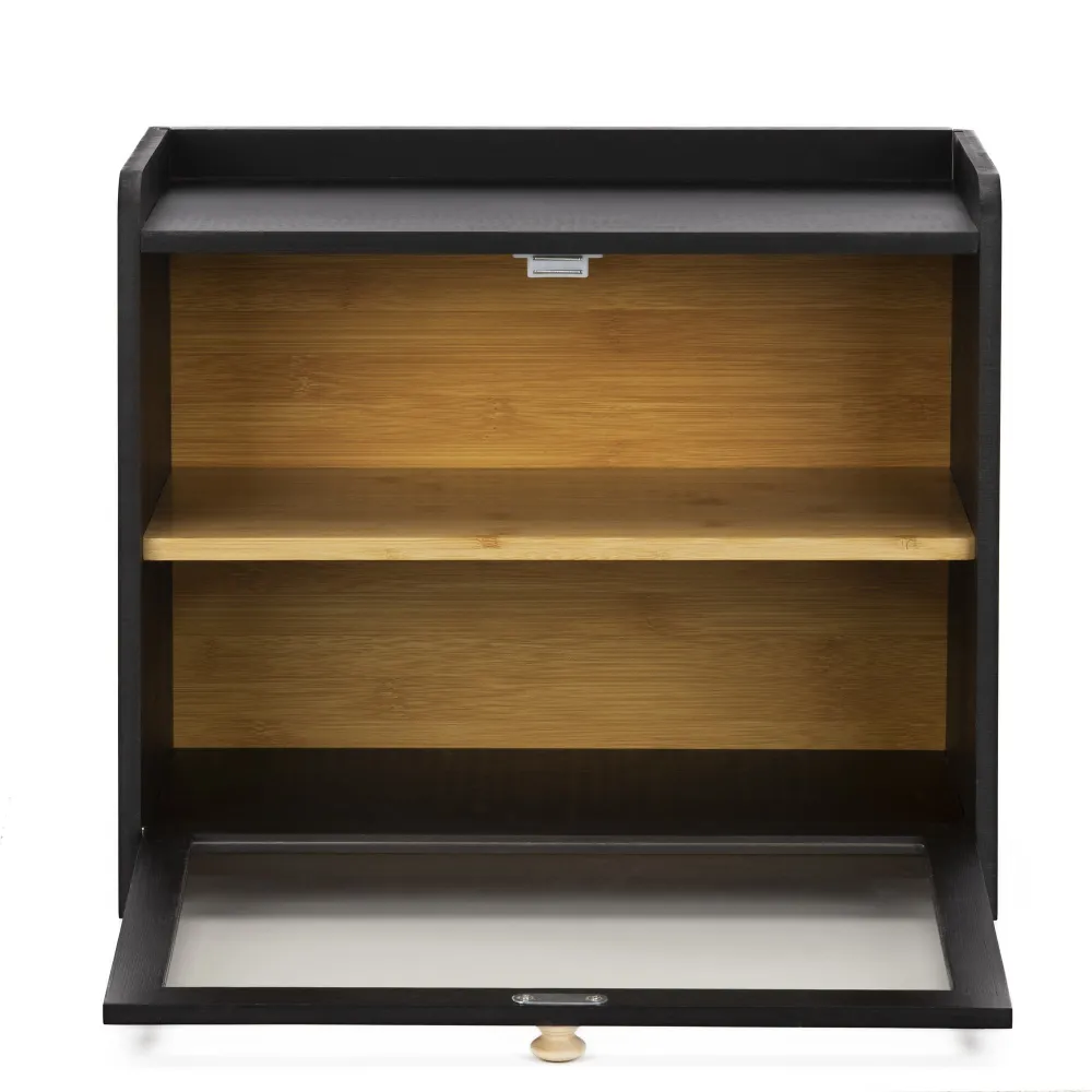 Drevený chlebník v elegantnom čiernom prevedení je praktická chlebovka na uchovanie pečiva v domácnosti. Magnetický zatvárací systém zaisťuje bezpečné a pohodlné uzavretie. Vnútorný priestor ponúka dostatok miesta na chlieb aj ďalšie pečivo a pomáha udržať čerstvosť. Chlebník sa hodí sa do modernej aj klasickej kuchyne. Rozmery: 40x25x33,5 cm.