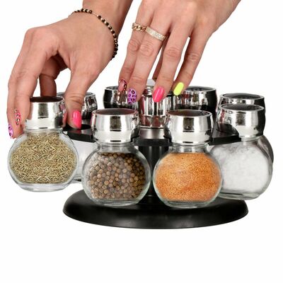 Moderná sada koreničiek so stojanom má 8 dóz , do ktorých sa zmestí najbežnejšie korenie. Pri vybavovaní kuchyne budete mať po ruke všetko , čo obohatí chuť vašich obľúbených jedál. Navyše si vďaka možnosti ich otáčania okolo základne uľahčíte prístup k potrebným surovinám. Korenie vo vrecúškach, často napchaté v košíku sa rozpadá, vlhne, stráca chuť. Sada vám umožní korenie správne uskladniť a pevne uzavrieť .