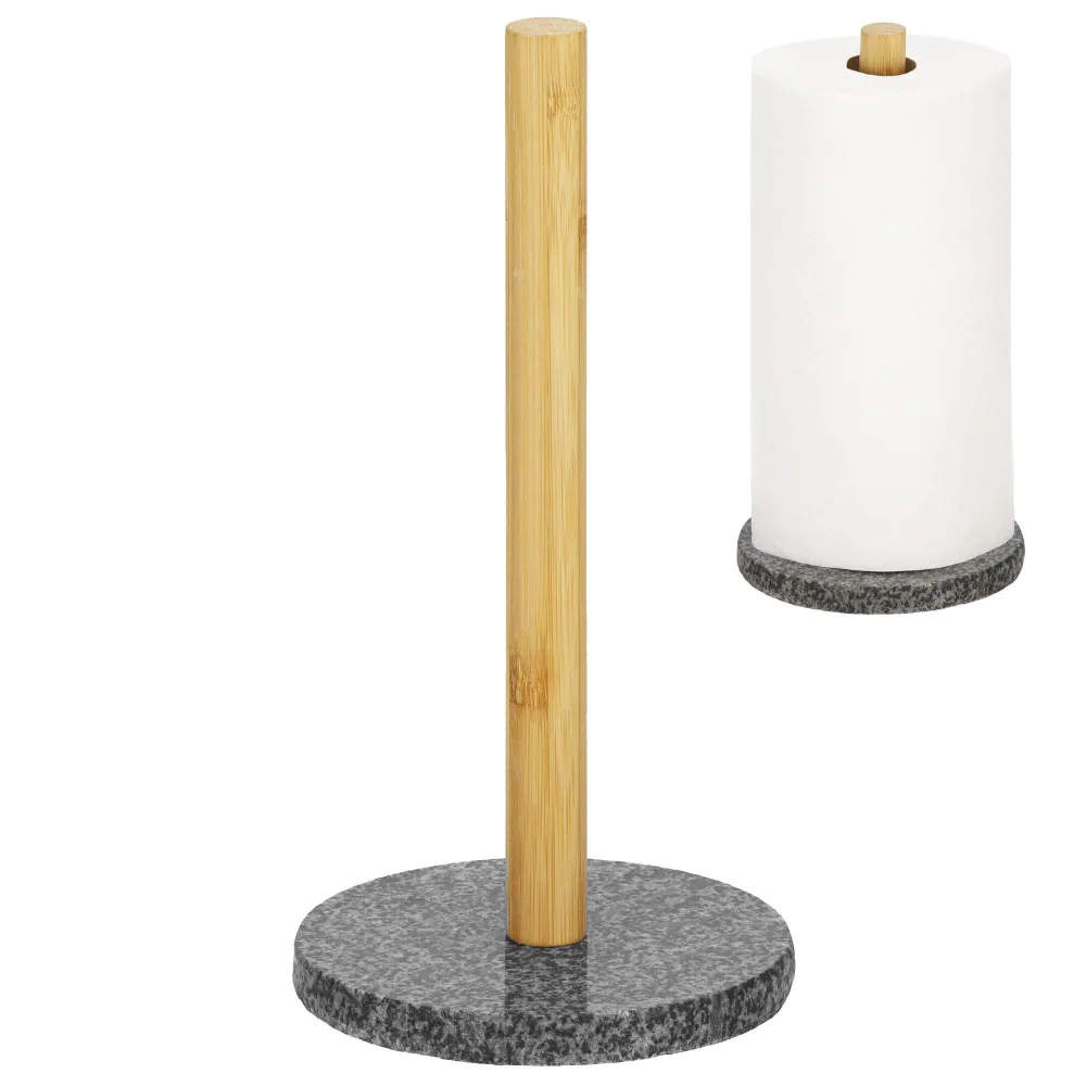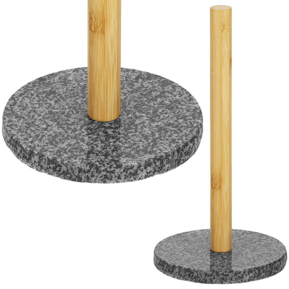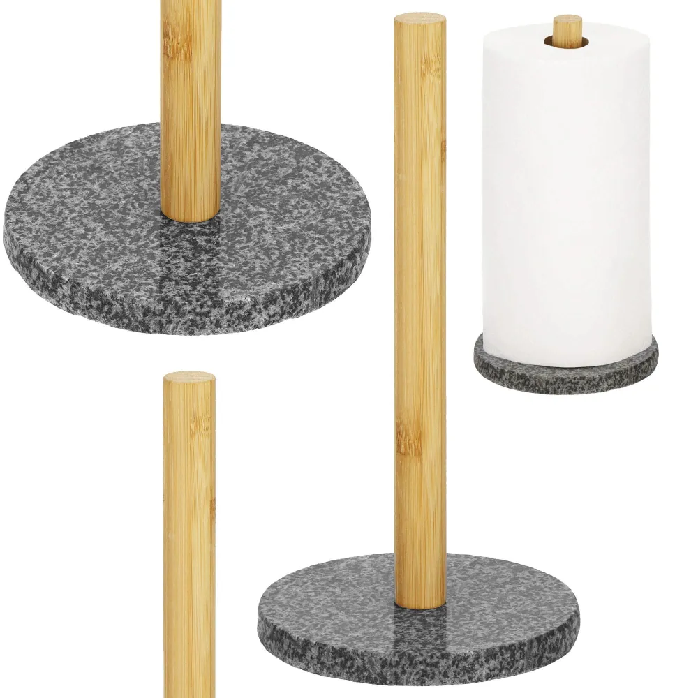 Bambusový držiak na papierové uteráky do kuchyne. Originálny design, kvalitné a odolné materiály. Stabilná protišmyková základňa z pravej žuly. Praktický pomocník na udržanie poriadku v každej kuchyni.