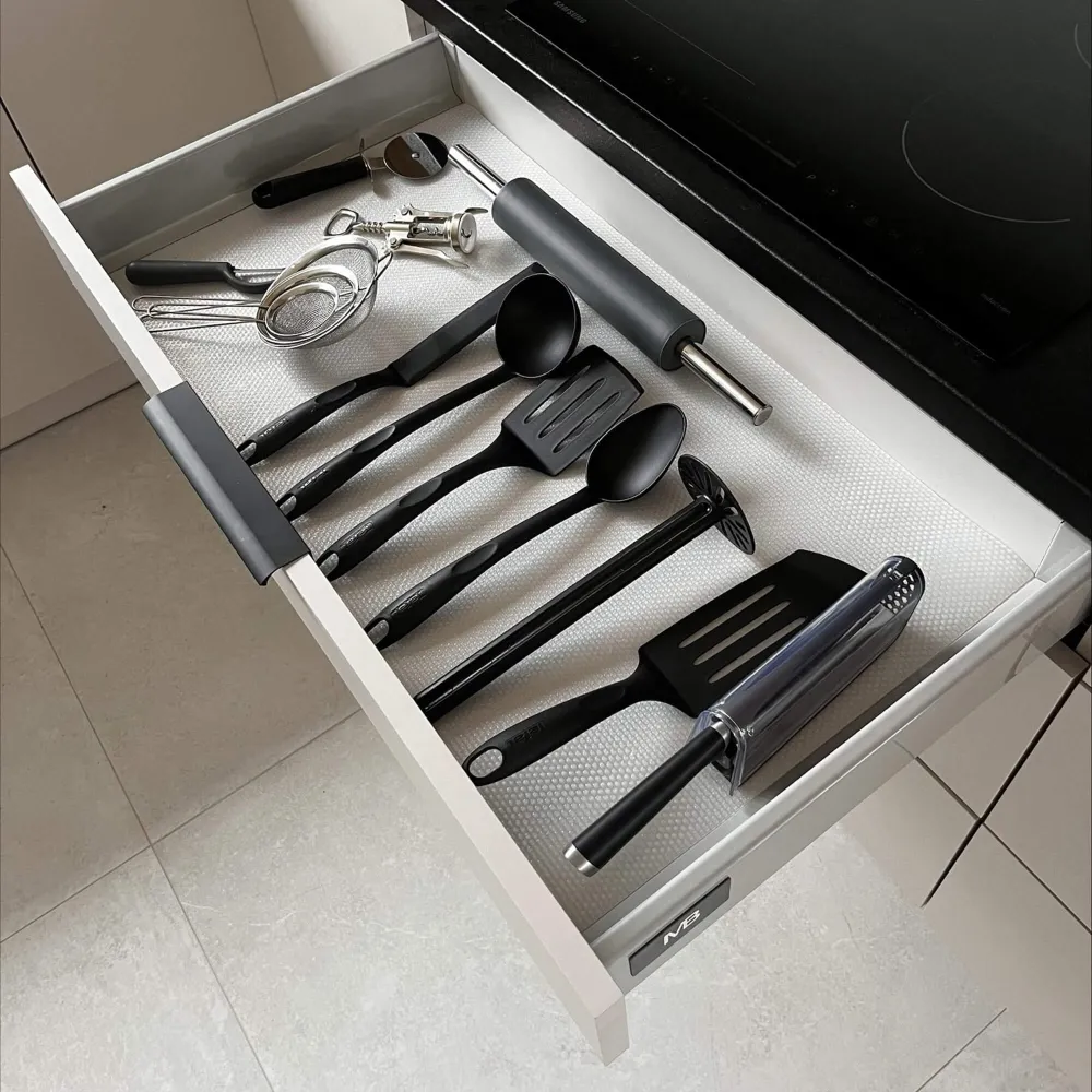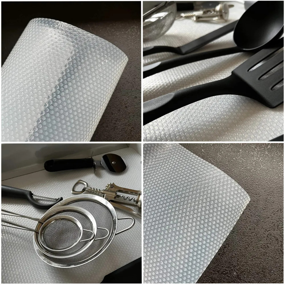 Protišmykovú podložku môžete umiestniť na množstvo miest, kde niečo skladujete. Zabraňuje poškriabaniu a posunutiu obsahu , napríklad pri otváraní zásuvky. Podložka zaručí vyššiu životnosť vášho nábytku. Zároveň šetrí čas a prácu pri čistení. Podložku stačí vybrať a striasť z nej prach alebo nečistoty. Má vodeodolné vlastnosti a certifikácie vďaka použitému netoxickému materiálu.
