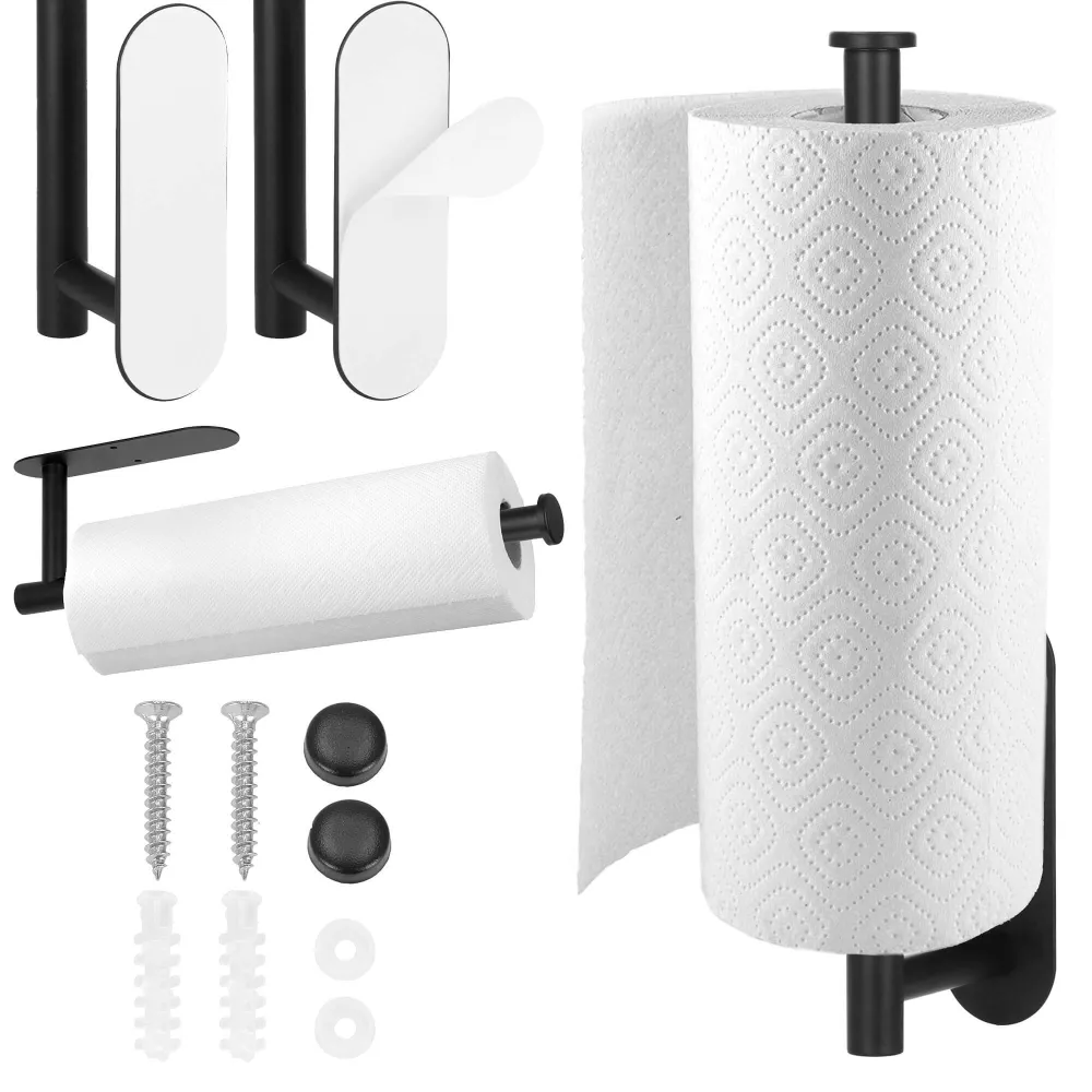 Univerzálny stojan do kuchyne alebo kúpeľne, ktorý nevyžaduje vŕtanie do steny . Pohodlné používanie. Šetrí vám miesto, je tak vhodný do menších kuchýň či kúpeľní. Pevný a odolný materiál, dlhá životnosť. Dva spôsoby inštalácie, pomocou samolepiacej pásky, alebo pomocou skrutiek. Všetky montážne prvky sú súčasťou balenia. Vhodné pre papierové rolky všetkého typu.