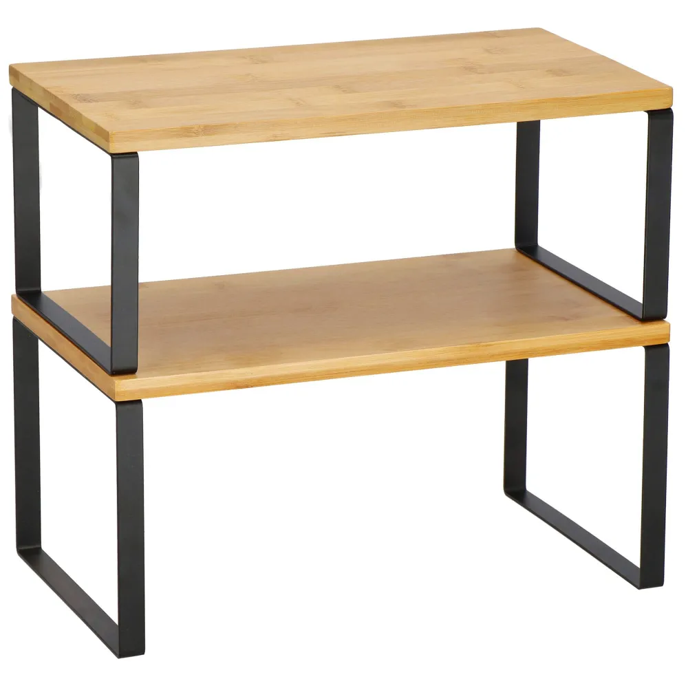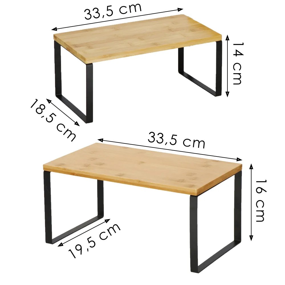 - Súprava dvoch kuchynských políc z bambusového dreva a čierneho kovu