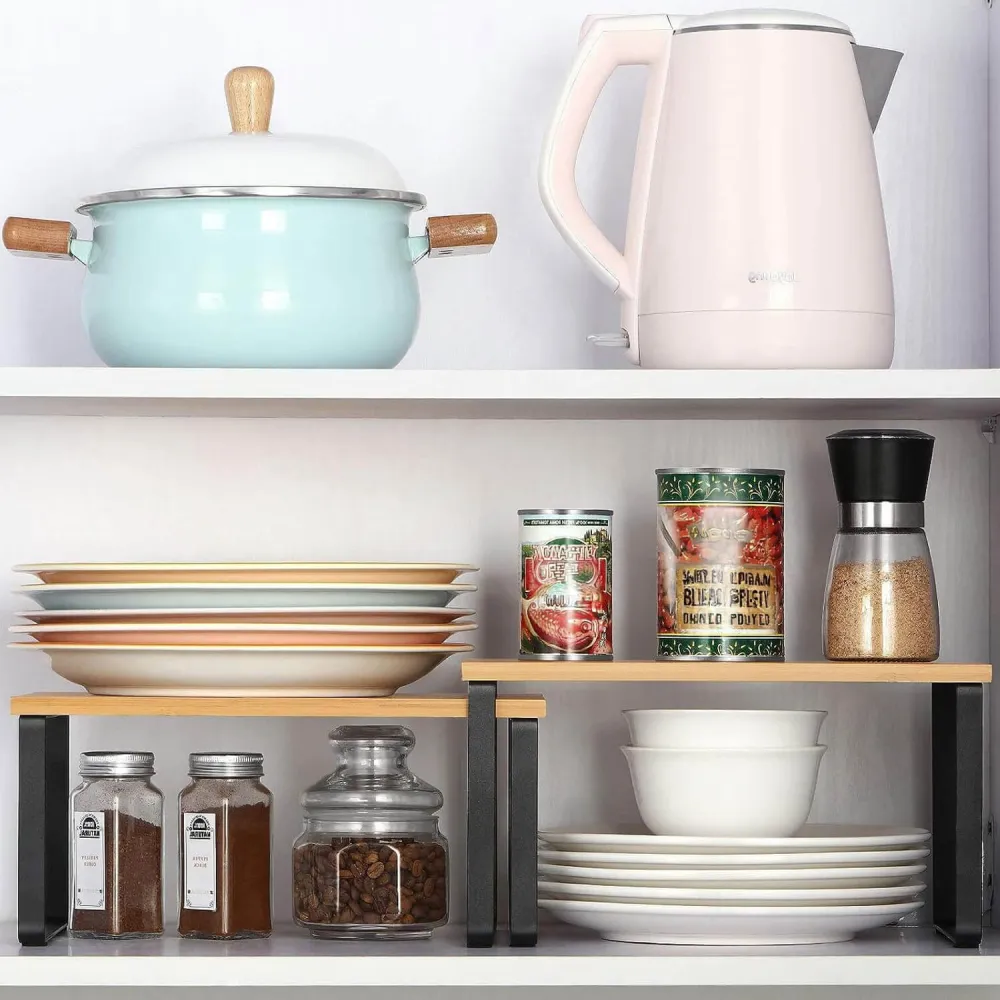Vďaka univerzálnemu dizajnu je možné túto prídavnú policu ľahko umiestniť na kuchynskú linku alebo stôl, kde pomôže organizovať každodenne používané veci a udržať kuchyňu čistú a prehľadnú. Optimálne veľkosti políc umožňujú ľahký prístup k uloženým potrebám, čo uľahčuje varenie aj prípravu jedál.