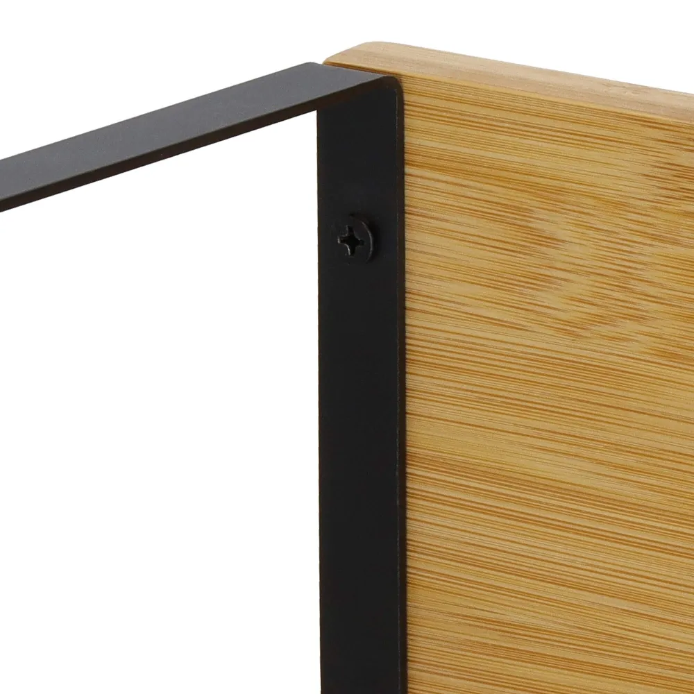 Kombinácia prírodného bambusového dreva a čierneho kovového rámu zaisťuje nielen moderný vzhľad, ale aj dlhú životnosť a stabilitu. Vďaka odolnej konštrukcii sú police pevné a spoľahlivé, čo umožňuje bezpečné skladovanie rôznych predmetov.