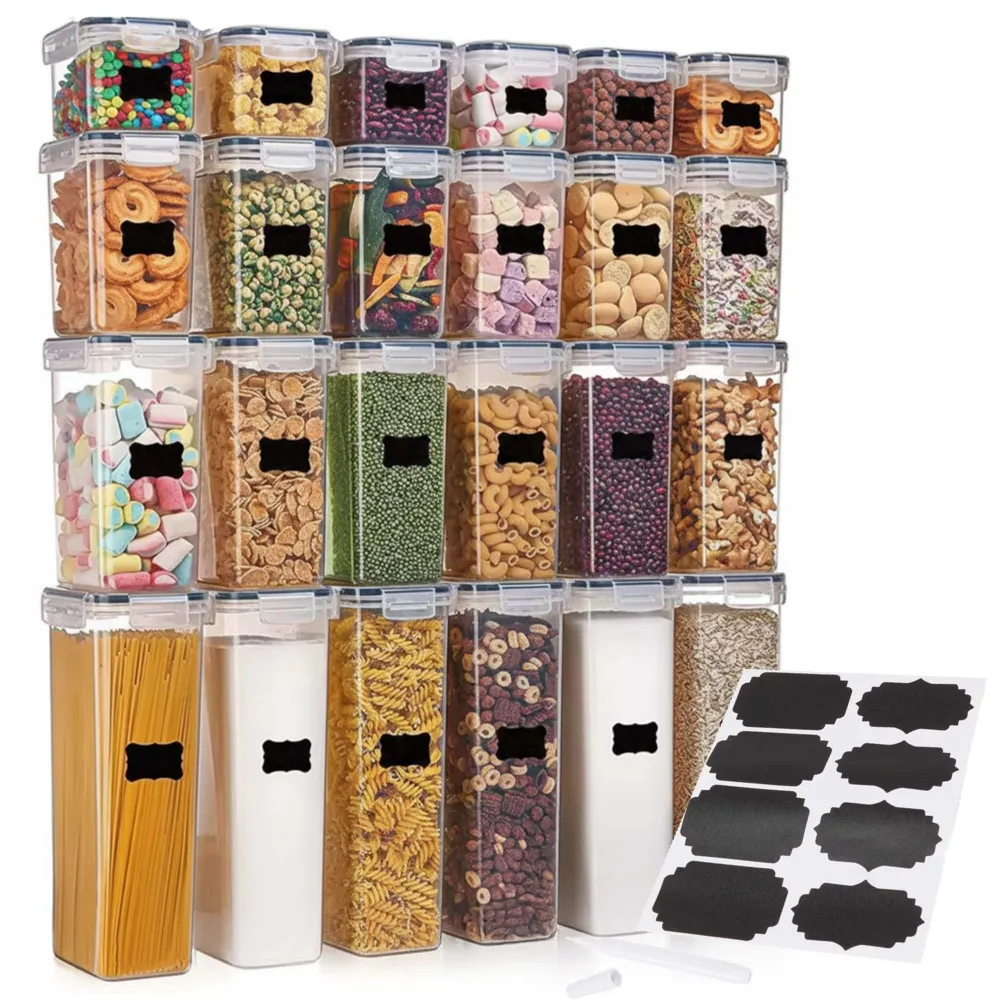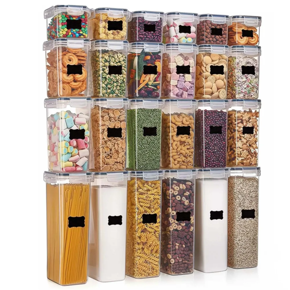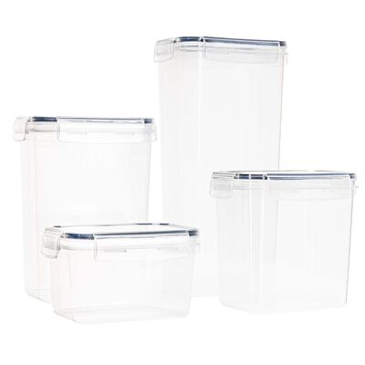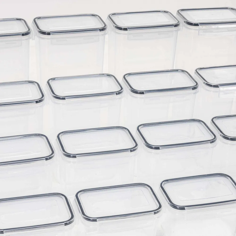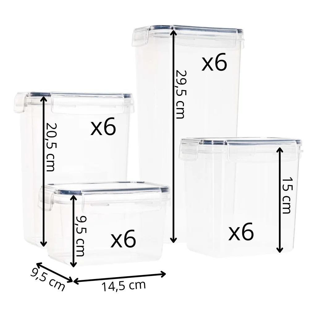 Plastové dózy na potraviny súprava 24 ks SPRINGOS KI0172 sú ideálnym riešením pre prehľadné a hygienické skladovanie potravín v každej kuchyni. Sada obsahuje štyri rôzne veľkosti nádob , ktoré sa hodia na suché potraviny, cestoviny, strukoviny, cereálie aj hotové jedlá. Priehľadné prevedenie umožňuje okamžitý prehľad o obsahu, zatiaľ čo vzduchotesné viečka so silikónovým tesnením pomáhajú uchovať potraviny dlhšie čerstvé.