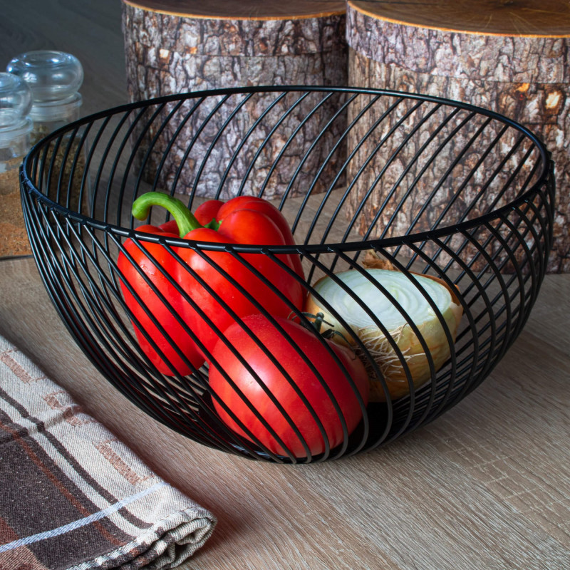 Drôtený košík v matnom prevedení je všestranným pomocníkom do domácnosti. Veľkou prednosťou je kvalitné spracovanie kovového materiálu. Do košíka môžete dať napríklad ovocie. Vďaka otvoreným stenám misky bola zaistená cirkulácia vzduchu, aby sa rýchlo nekazilo.