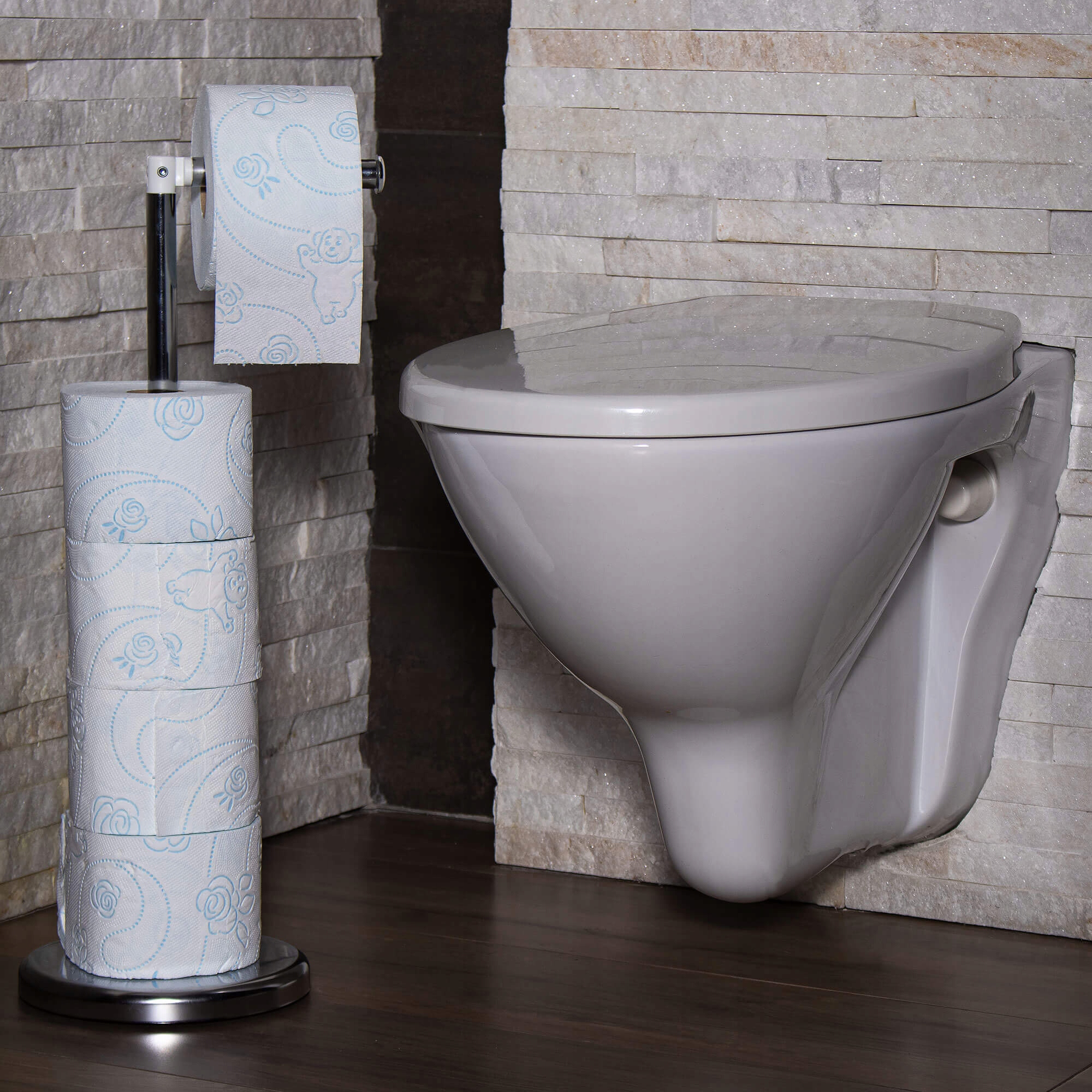 Praktický stojan na toaletný papier je ideálnym doplnkom do kúpeľne alebo kuchyne. Vyrobené z kvalitného materiálu, kapacita až na 6 ruličiek toaletného papiera. Elegantný design, pohyblivé rameno. Bez nutnosti montáže do kachličiek, chrómovaný kov.